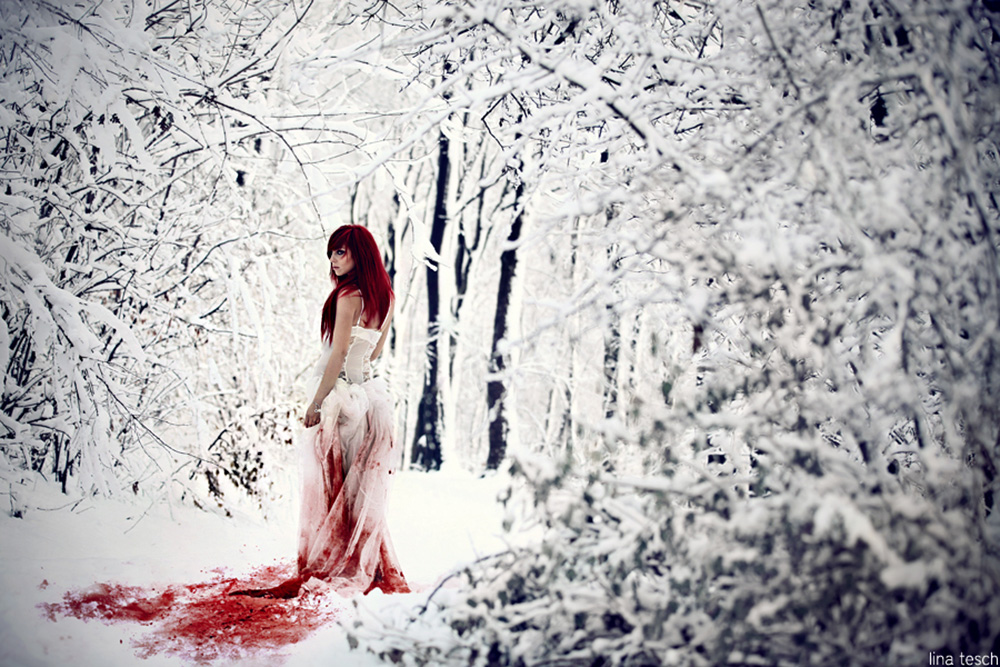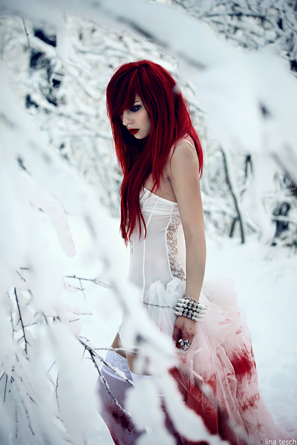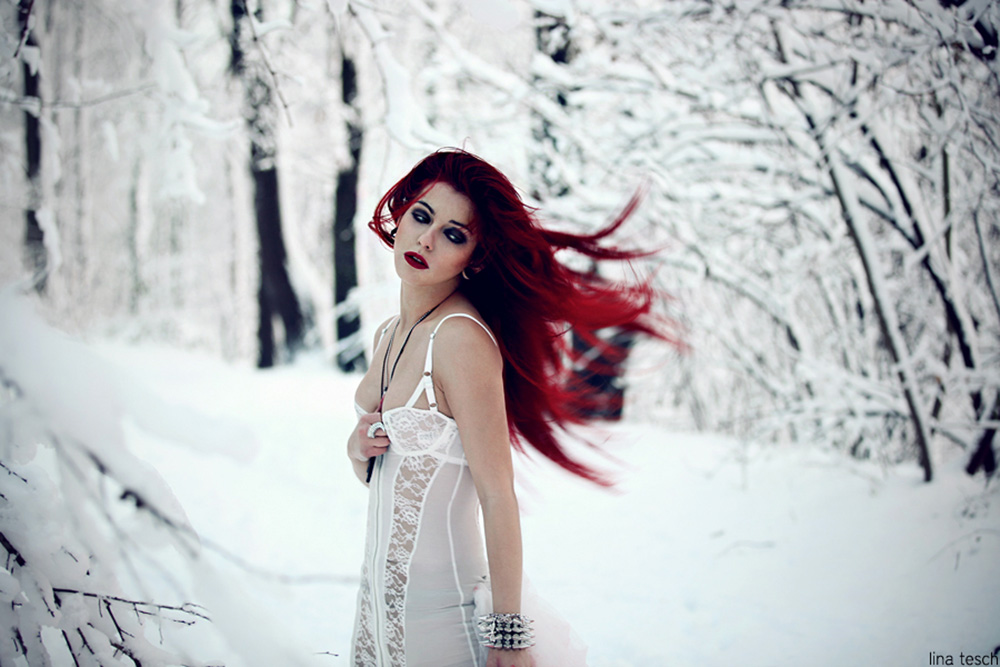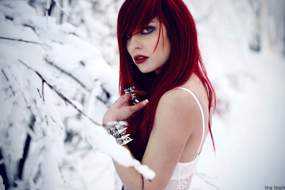 was sind das nur für geile bilder?! wow ich liebe die kombination mit dem rotem haar, dem dramatischen make up und dem unschuldigen weißen kleid. unglaublich gut! P_P