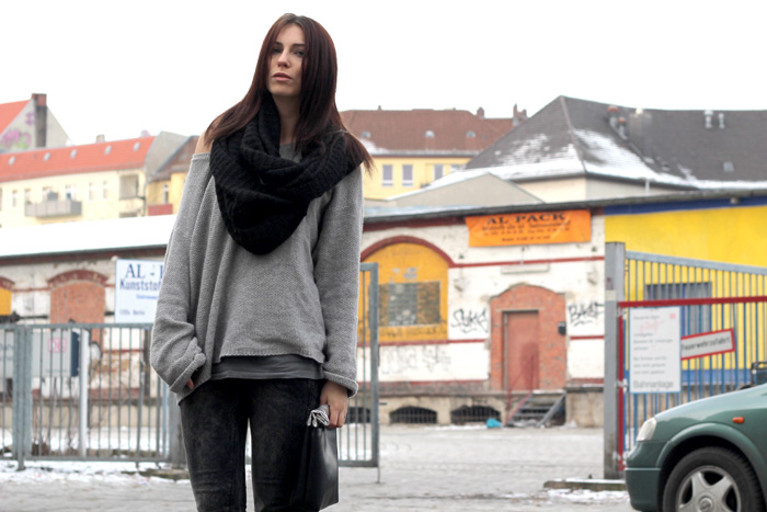 EN: After all this Fashion Week chaos and all that crazy stylings I couldn’t wait to wear something more warm and cosy again. No accessories, comfortable wedges and even the clutch (choies) looks simple in combination with the look.