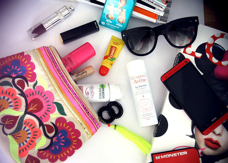 1. Sonnencreme, Sonnenbrille, Deo , Pflaster und Regenschirm habe ich auch immer in meiner Handtasche.