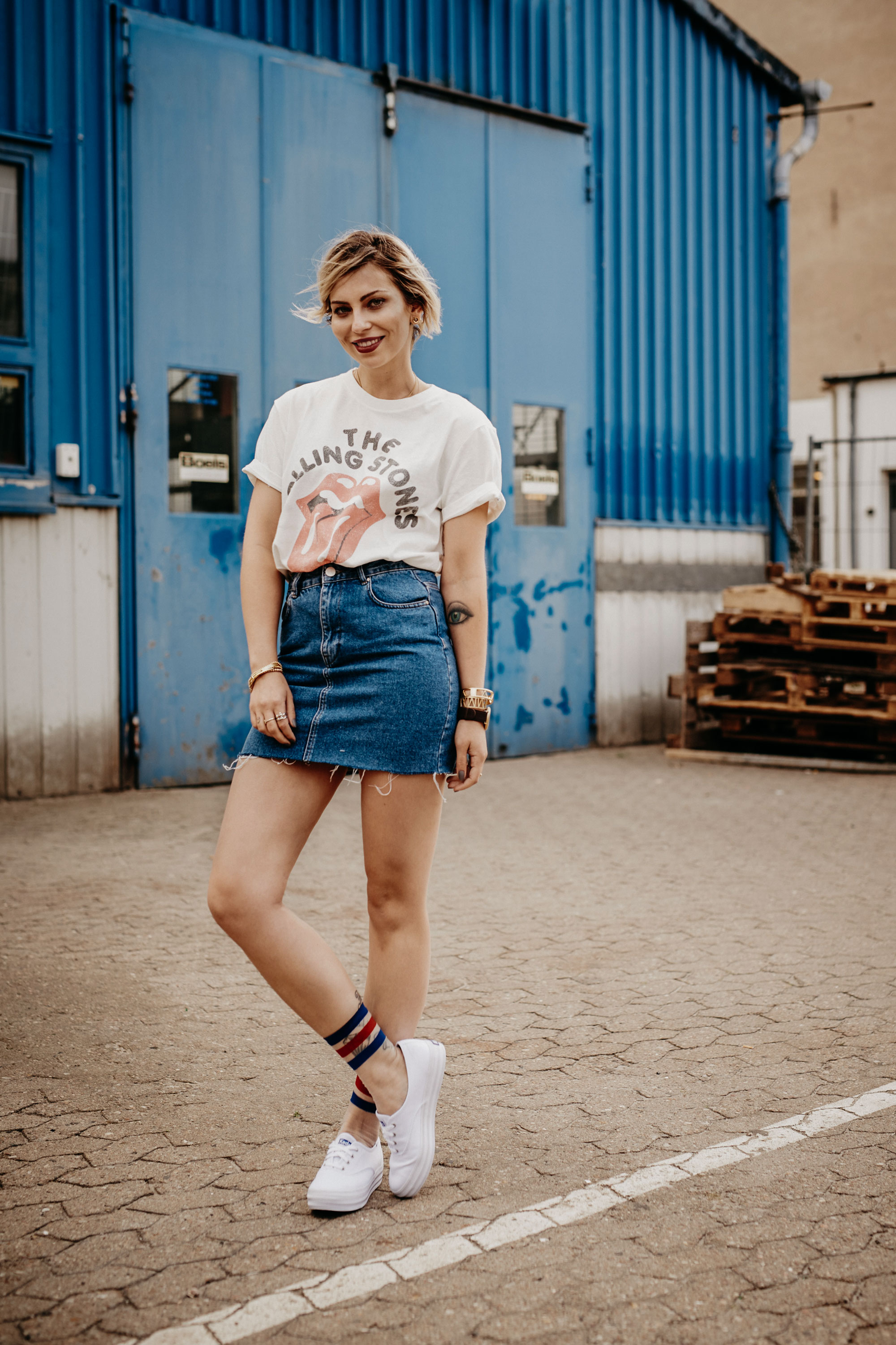 I took it from there and selected a classic and sporty outfit: a shortened denim skirt, tipping my hat to lates fashion craze, a wonderfully soft Rolling Stones shirt and socks to provide a little highlight, matched with the sneakers. I drew inspiration for the look from Taylor Swift, who wore a pretty similar combination once – also complete with her Keds. Taylor Swift has been the face and testimonial for Keds since 2012, embodying a new kind of female icon: an independent, free spirit. A woman with power and a will of steel, and at the same time a real lady. Keds are sneakers, but they are much more than that as well: a style item synonymous with women that goe their own way. Women like Yoko and Audrey, who were not afraid to venture off the beaten path, and wore sneakers when they wanted, defying the social norms of their times. Looking up to these role models, I’m happy to be part of the ladies first campaign. It is my wish to follow them in their large footsteps, to pave the way for a new generation of women. I have the hope to move things in life, to move beyond rules and norms towards more freedom for a strong generation of women. I didn’t follow any trodden paths myself, I chose to work on my dream. And I never regretted it. For me that meant leaving everything behind and moving to Berlin at the spur of a moment. And I never looked back. In the end it wasn’t always easy, and I faced many, many risks. I often posted texts that I really was not sure whether I should publish them, dealing with subjects completely outside the realm of fashion. In the end it always made me feel proud to have an opinion. In the end, I never regretted anything. Regret often comes from the lingering feeling that we failed to act in a certain moment, the feeling that we may not have done everything we should have done. I know for myself that I will continue to follow my path, ready for the next jump, the next adventure, always with the hope that maybe I can be role-model for others. And of course I’ll be taking my Keds with me.