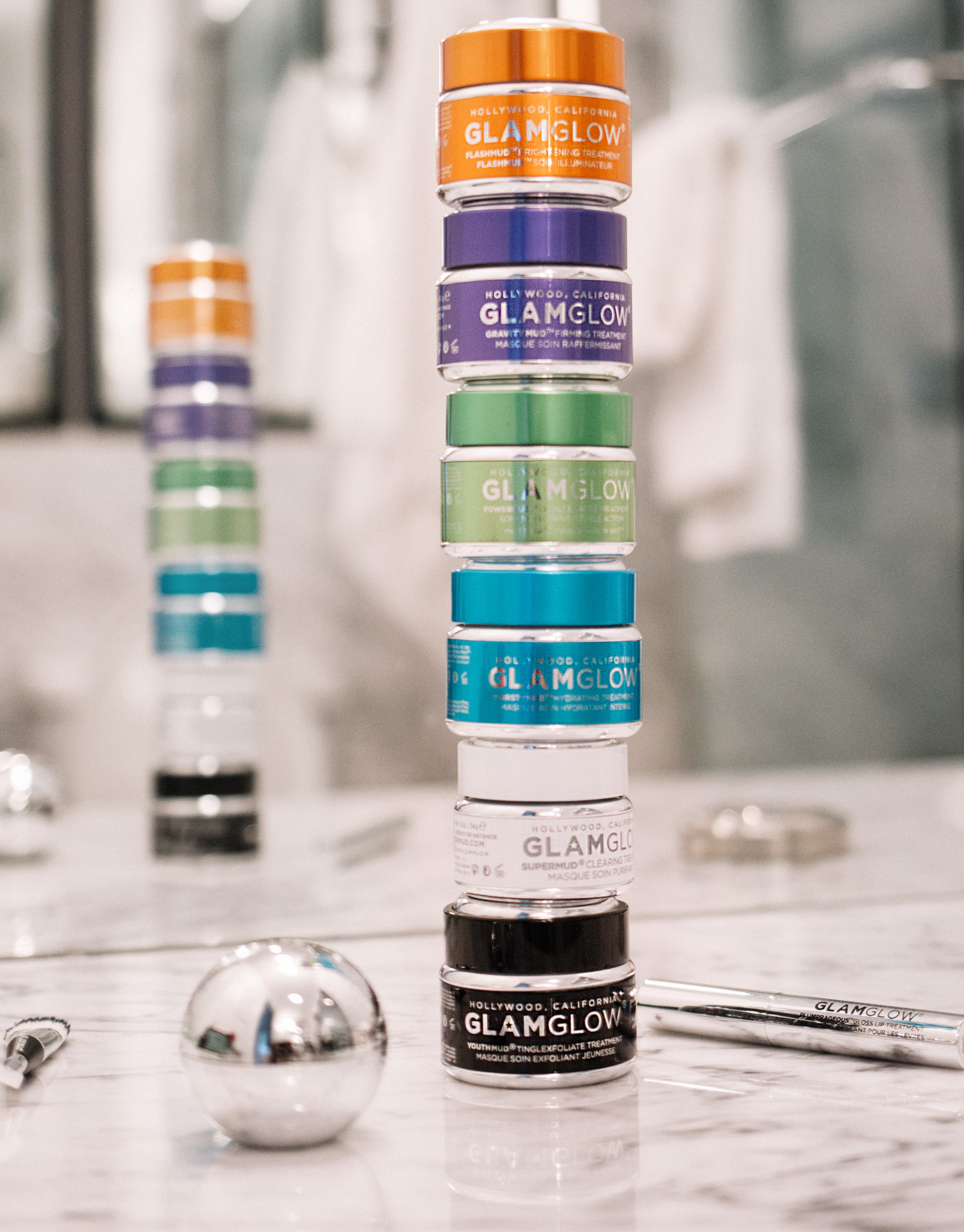 Gravity Mud Firming Treatment This tightening mask creates beautiful contours and helps to restore the skin’s natural elasticity. Special feature: the mask is completely silver, and it smells of coconut when applied.   Powermud Dualcleanse Treatment This detox mask contains tiny peeling grains and cleanses your skin thoroughly. It’s the ideal product to cleanse your skin from the dirt and residue of the week and to restore your skin’s natural glow. Special feature: the mask has an oily consistency when it is applied, and dries quickly on your skin. To remove it, Glamglow recommend you gently massage the mask with wet fingers to reverse the process and to restore the product’s original oily consistency. This one’s ideal in summer, especially helpful when you used a bit too much bronzer – you’ll be able to remove it in no time at all with this mask.   Flashmud Brightening Treatment This brightening treatment is ideal for skin with an irregular complexion. It’s an effective choice for pigment spots and dark areas. The product will make your skin glow. During the application it smells a bit like fizzy soda tablets – yummy, nice childhood memories. Special feature: the mask turns semi-transparent as the active substances of the mask enter the skin. You can watch the mask’s effect unfold as it happens.   Other Treatments:   Poutmud Fizzy Lip Exfoliating Treatment & Wet Lip Balm Treatment Duo The lip treatment helps to prevent brittle and dry lips and is also sort of a peeling at the same time. The peeling grains melt on your lips once applied. Special feature: it’s not necessary to wash it off.