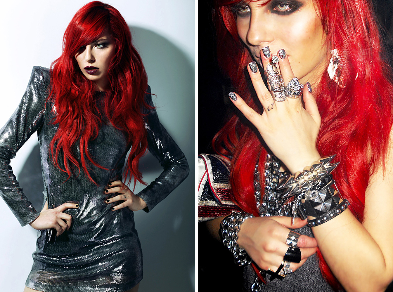 Ganz klar: das Bild mit den langen, welligen roten Haaren LIEBE ich. Das,wo du ein schwarzes spaciges Glitzerkleid trägst. Ich nehme an es sind Extensions mit drin? Jedenfalls finde ich diese Farbe super und die Länge der Haare auch. Wahnsinn wie wandlungsfähig du bist, sehr fotogen und Attitude – und: du traust dich was!