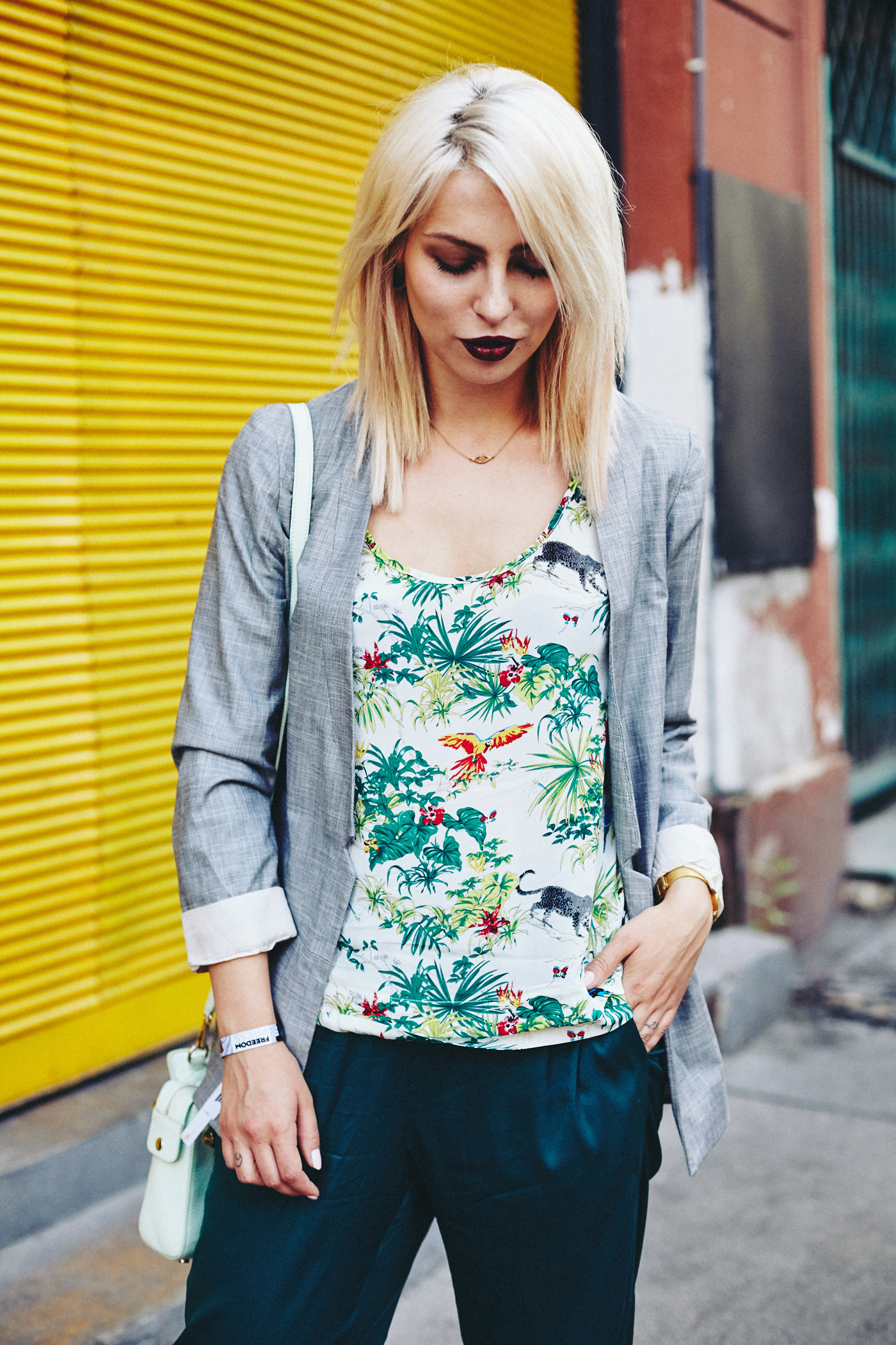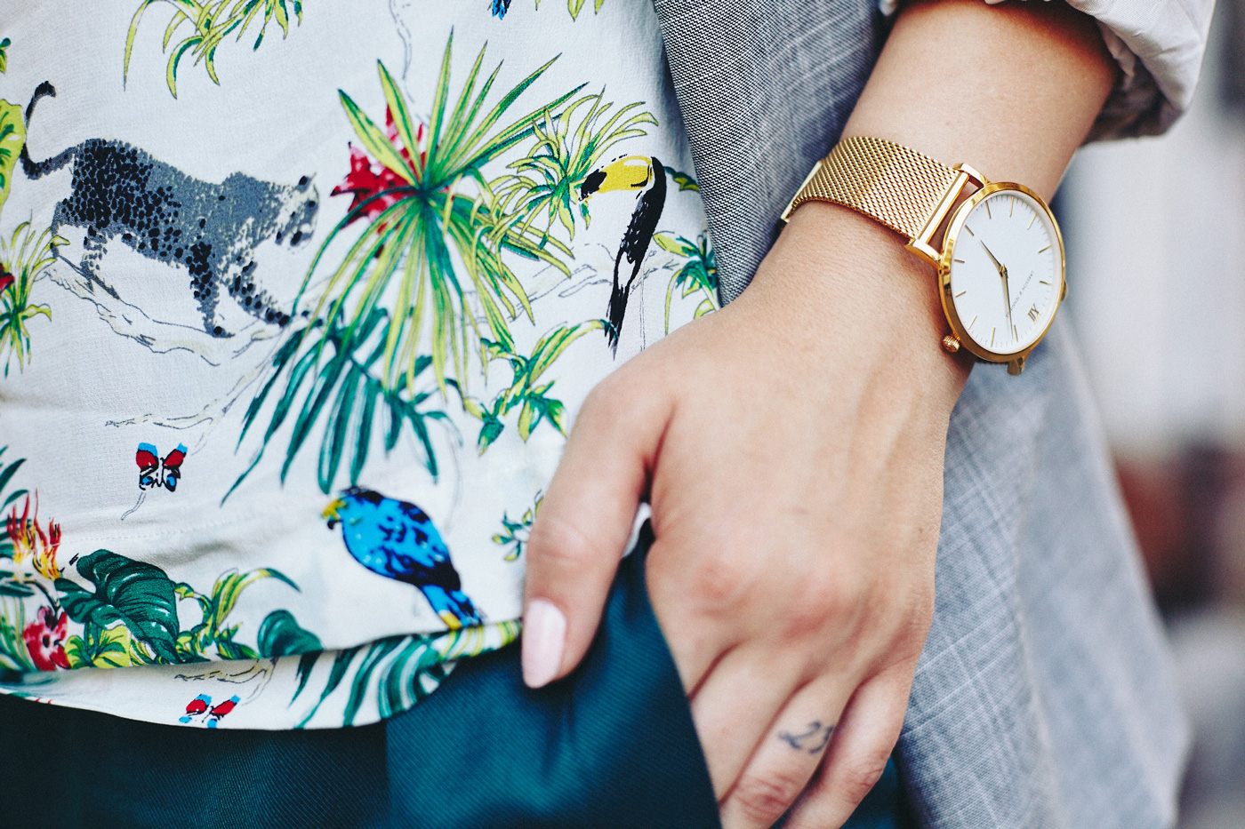 Wer mir schon länger folgt, weiss eigentlich, dass ich es nicht soooo sehr mit Farben habe. Also eigentlich. Uneigentlich hatte ich schon sehr lange nicht mehr so viel Hitze an einem Stück durchlebt, die mich in meiner Farbwahl geprägt hat. Denn: Schwarz anzuziehen würde bei 38°C im Schatten garantiert leichte Verbrennungen bedeuten, deswegen habe ich mich für luftige Kleidung sogar mit Muster entschieden. Und nicht einfach irgendwas, sondern ein Oberteil aus Seide von Kala, einer Berliner Designerin, die ich vor Kurzem kennengelernt habe, die ursprünglich aus…richtig, Budapest kommt! Passt doch, oder? Um es trotzdem nicht zu bunt zu treiben, trage ich dazu einen Blazer und Sneaker, quasi weg vom Pop und hin zu sportlich. Wie gesagt, normalerweise habe ich es nicht so mit Farben, aber man könnte vielleicht auch denken, die Umgebung hätte mich ein wenig inspiriert :) Usually I’m not that much into colors, but here in Budapest it’s too hot for my #allblackeverything outfits. At least if you don’t want to have serious burns. So today I go for colors and pattern. The silk shirt is from Kala, a Berlin based designer, who comes originally from Budapest. To make the outfit less pop, but more sporty I’ve combined it with a blazer and superstars :) Мои постоянные читатели знают, что я не очень люблю цветные вещи. Но на сей раз на мой выбор повлияла нескончаемая жара. Когда на улице 38°C в тени, надеть черное – значит получить неминуемые ожоги. Поэтому сегодня я выбрала легкую одежду, и даже с рисунком! И не что-нибудь, а шелковую рубашку от Kala, берлинского дизайнера, с которой я познакомилась недавно, и которая родом из… правильно, Будапешта! Все сходится! Чтобы наряд не выглядел слишком пестро, я подобрала к рубашке однотонный блейзер и кроссовки, которые привносят в мой образ элемент спортивного стиля.   masha-kala-berlin-1 masha-kala-berlin-6 masha-kala-berlin-4 masha-kala-berlin-9 masha-kala-berlin-3 masha-kala-berlin-5 masha-kala-berlin-2 masha-kala-berlin-7 | Shirt: Kala | Pants: Alexander Wang | Shoes: Adidas | Bag: Viktor & Rolf |