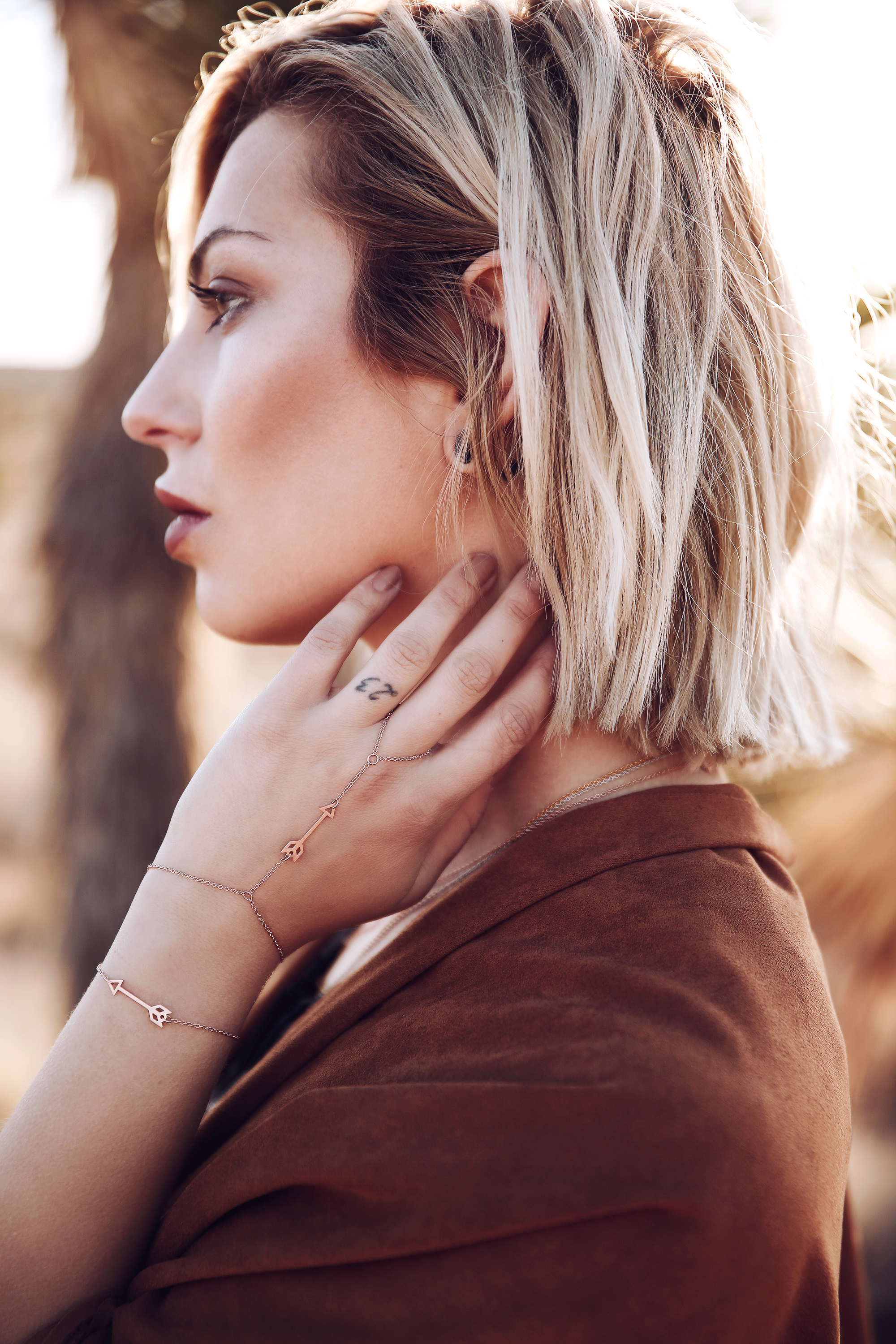 Since you probably already noticed my first jewelry collection for Stilnest was influenced with the moon as the main subject. Tomorrow, we are adding a new collection, this time I have designed the jewelry collection together with Anni and Jana just in time for the Coachella Festival. Of course, the moon is present in the new collection too, but this time a little finer in fact the entire collection is more delicate, perfect for summer! In addition to the moon, there are arrows as a recurring motif and small neatly engraved bars as either bracelets or necklaces.   What I also love about the pieces, is the fact that, although perfect in themselves, they can also be effectively combined, for example the engraved bar chain, together with the moon and the arrow chain creates a harmonious image without being overdone. Individually the pieces are also really great worn alone.