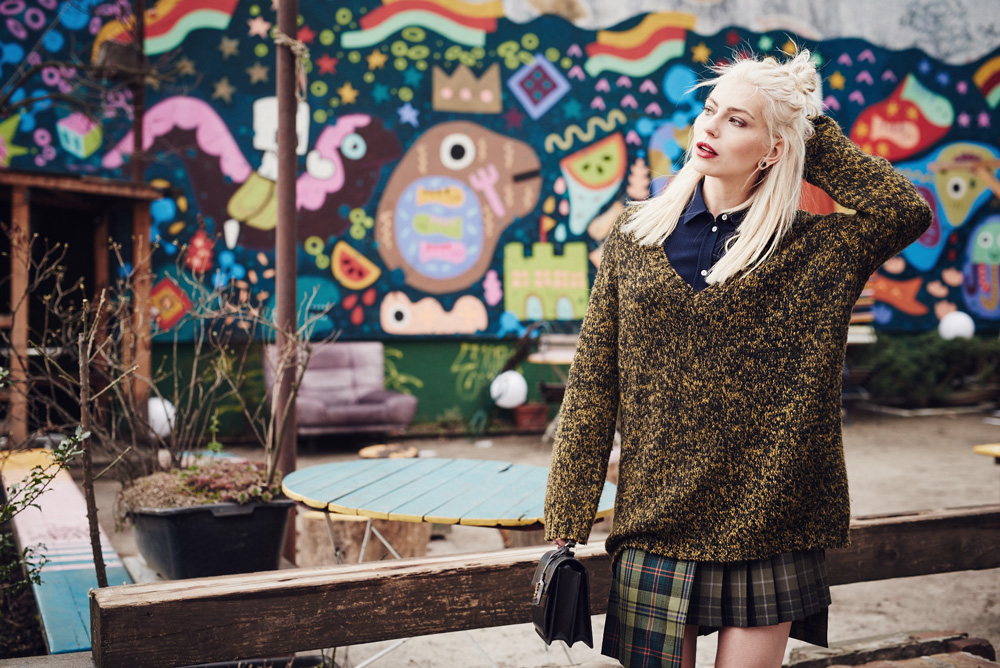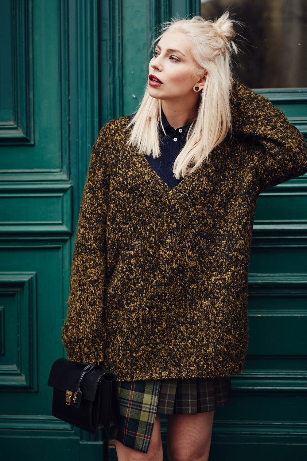 Skirt: Versus shoes: Stella McCartney shirt: Nanushka bag: Saint Laurent sweater: vintage