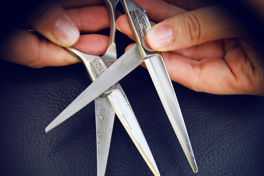 3. Auch bei Friseurscheren gibt es gewaltige qualitative Unterschiede. Die übliche Friseurschere für 50 EUR schneidet das Haar nicht so radikal, scharf und gleichmäßig wie das japanische 1.600 EUR Samurai-Modell, das schärfer ist als Chirurgenstahl. Diese Scheren erkennt man auch an ihrer ganz speziellen Maserung, die sich von Schere zu Schere unterscheidet.