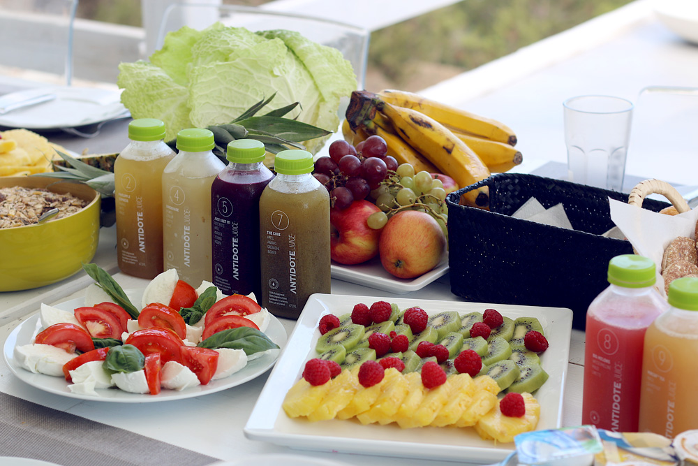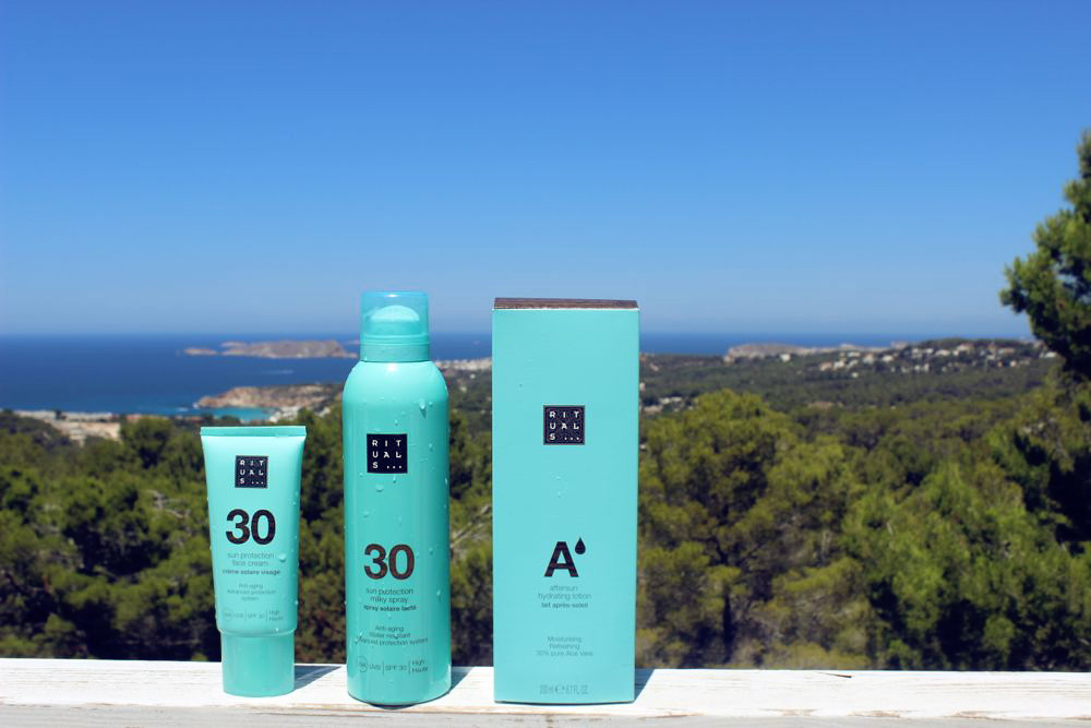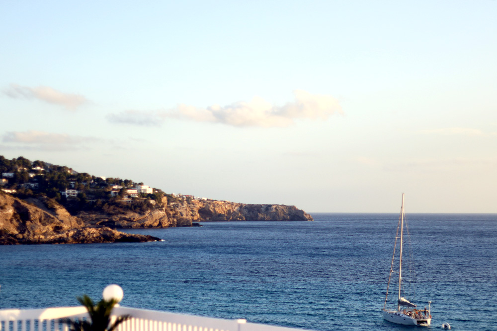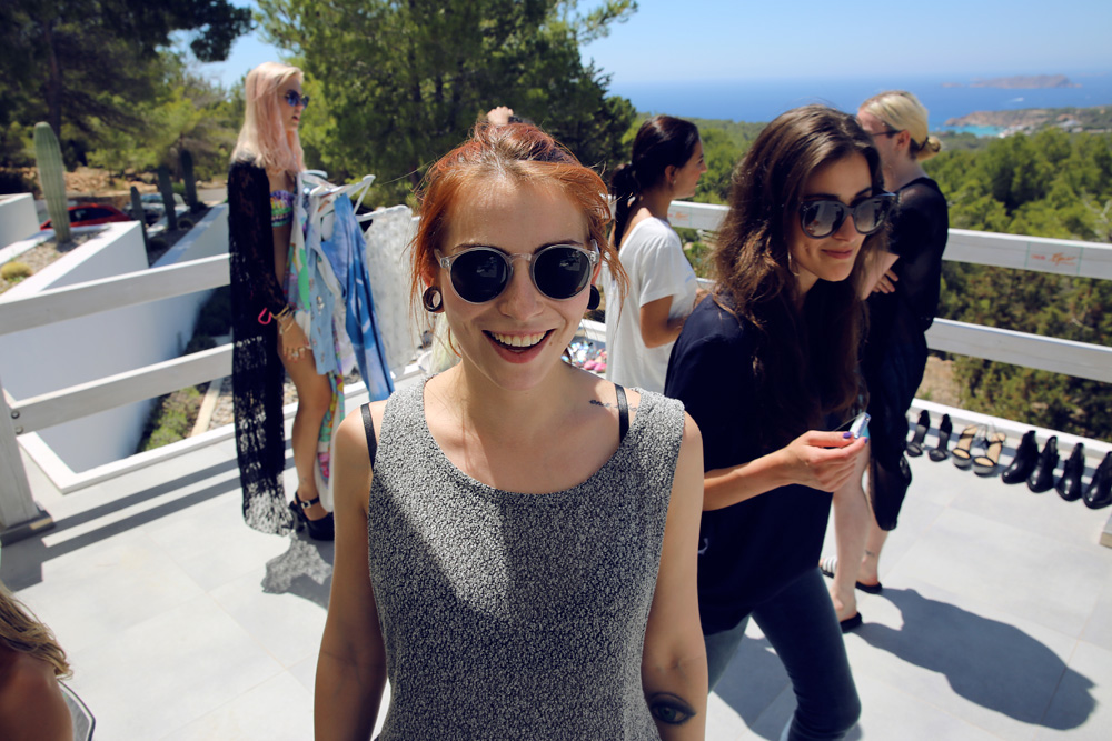 Am ersten Tag flog ich morgens mit airberlin von Berlin nach Ibiza. Als ich schon über die Insel drüberflog bekam ich ein warmes, aufgeregtes Kribbeln im Bauch, denn allein schon aus der Luft sieht es sooo cool aus! Nach der Landung erwartete uns auch schon das halbnackte Blogger Bazaar Begrüßungskomitee. Erst da merkte ich überhaupt den Temperaturunterschied zwischen Berlin und Ibiza, aber in Berlin war es einfach sooo kalt zu dem Zeitpunkt, dass mir gar nichts anderes übrig blieb, als Jeans und Lederjacke zu tragen. Im Endeffekt ist mir später aufgefallen wie viele warme Klamotten ich im Vergleich zu leichten Oberteilen dabei hatte… not very clever… Nachdem wir also einen kurzen Tapas-Snack zu uns genommen haben gings auch schon ab in die Villa! Ein Traaaaaaum von einem Zuhause. Ohne Witz, ich wäre da sofort eingezogen – so geil war es da. Dieser Pool, diese Aussicht und alles ist irgendwie hell und schön und modern. Wenn ich mal groß bin hätte ich auch gern sowas, aber die läppischen 3 Mio, die die Villa kostet, muss ich erstmal ansparen. Nachdem wir uns dann alle beruhigt und ausgepackt haben (wir sind nämlich wie kreischende Kinder mit ausgestreckten Armen durch die Villa gerannt und haben uns gefreut) gings auch schon weiter zum Rituals Store, wo wir, ebenfalls wie kleine Kinder, alles ausprobierten und uns mit sämtlichen Lotions und Kosmetik eincremten und -schmierten und uns mit Sonnencreme und After-sun eindeckten. Ich glaube aber eh, dass ich aus der Runde die Einzige war, die sich so erpicht und konsequent mit allem möglichen Schutz dick eingecremt hat. Nicht, dass ich gegen ein bisschen Bräune was einzuwenden gehabt hätte, aber ich habe durchaus ein Problem damit mich später über Falten ärgern zu müssen, die ich auch hätte verhindern können. Ich glaube mit meinen unheilvollen Drohungen (“wenn du dich jetzt nicht eincremst, wirst du dich in 5 Jahren tierisch über deine tiefen Falten im Gesicht ärgern und wenn du jetzt keine After-sun draufschmierst wird dein Körper morgen brennen und du wirst dir wünschen, du hättest auf mich gehört…”) ging ich den anderen glaube ich ein bisschen auf den Keks, aber immerhin haben sie alle artig auf mich gehört und sich hübsch eingecremt. Am Abend waren wir aber dann alle eh total tiefenentspannt, nachdem wir von Rituals eine Yogasitzung mit einer Star-Yogatrainerin bekommen haben. Ich habe mir die einzelnen Posen leider nicht mehr gemerkt und ich glaube wir sahen von außen betrachtet ziemlich merkwürdig aus aber geholfen hat es trotzdem und ich habe in der Nacht wie ein kleiner Stein geschlafen.