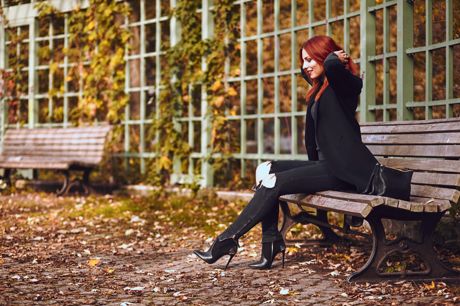 Mir fällt grade mal auf, dass ich diese Woche eigentlich nur schwarze Looks gezeigt habe, eine eigentlich schon fast unfreiwillige schwarze Woche also, aber morgen ändere ich das mit einem anderen Look! Eigentlich passt das schwarze Motto ja auch ganz gut, schließlich haben wir heute Halloween, eins meiner Lieblingsfeste des Jahres! Blöd nur, dass ich noch nicht so ganz weiss, als was ich gehen soll (gruselige Puppe?), weil mein Plan A als Maleficent zu gehen leider nicht aufgegangen ist. Blöderweise war ich nämlich nicht die Einzige mit diesem genialen Plan und weit und breit waren die Hörnchen in den letzten Tagen ausverkauft.. mega ärgerlich! Außerdem weiss ich auch noch nicht wohin ich gehe, darum kümmere ich mich gleich! Wenn ihr also eine gute Party in Berlin kennt, sagt unbedingt Bescheid!   Aber kurz noch ein paar Worte zum Outfit: auf den Bildern wirkt es echt nicht sonderlich spektakulär, aber in Wirklichkeit war es eins dieser Lieblingsoutfits, weil es einfach perfekt zu mir als Person passte: dunkel, klassisch, aber nicht zu schick. Am meisten hat es mir aber mein neuer Calvin Klein Mantel angetan!! Ich habe ihn bei TK MAXX geschossen und war ziemlich stolz, denn das Teil ist aus Kaschmir, gefuttert mit Seide und ich habe ihn einfach mal für 140 EUR geholt. Mega Schnäppchen!!! Manchmal hat man einfach Glück und ich feier die Premium Abteilung ja eh total hart! Schließlich löst kaum etwas ein so tolles Glücksgefühl in mir aus wie ein richtig geniales Schnäppchen! I just noticed, that I’ve only showed you black looks this week, but don’t worry: tomorrow I’ll change that! I mean, it’s not a secret, that black is my favorite color, so I guess it’s no surprise. Maybe because today is Halloween, so I’m totally in black Halloween mood. We’ll never know… Anyway, in these pictures my outfit looks a little bit boring, but in reality it’s much cooler. Highlight here is my new coat from Calvin Klein. A mega bargain I shot in tk maxx. I guess there are only just a few things that make me more happy than a good bargain! :)