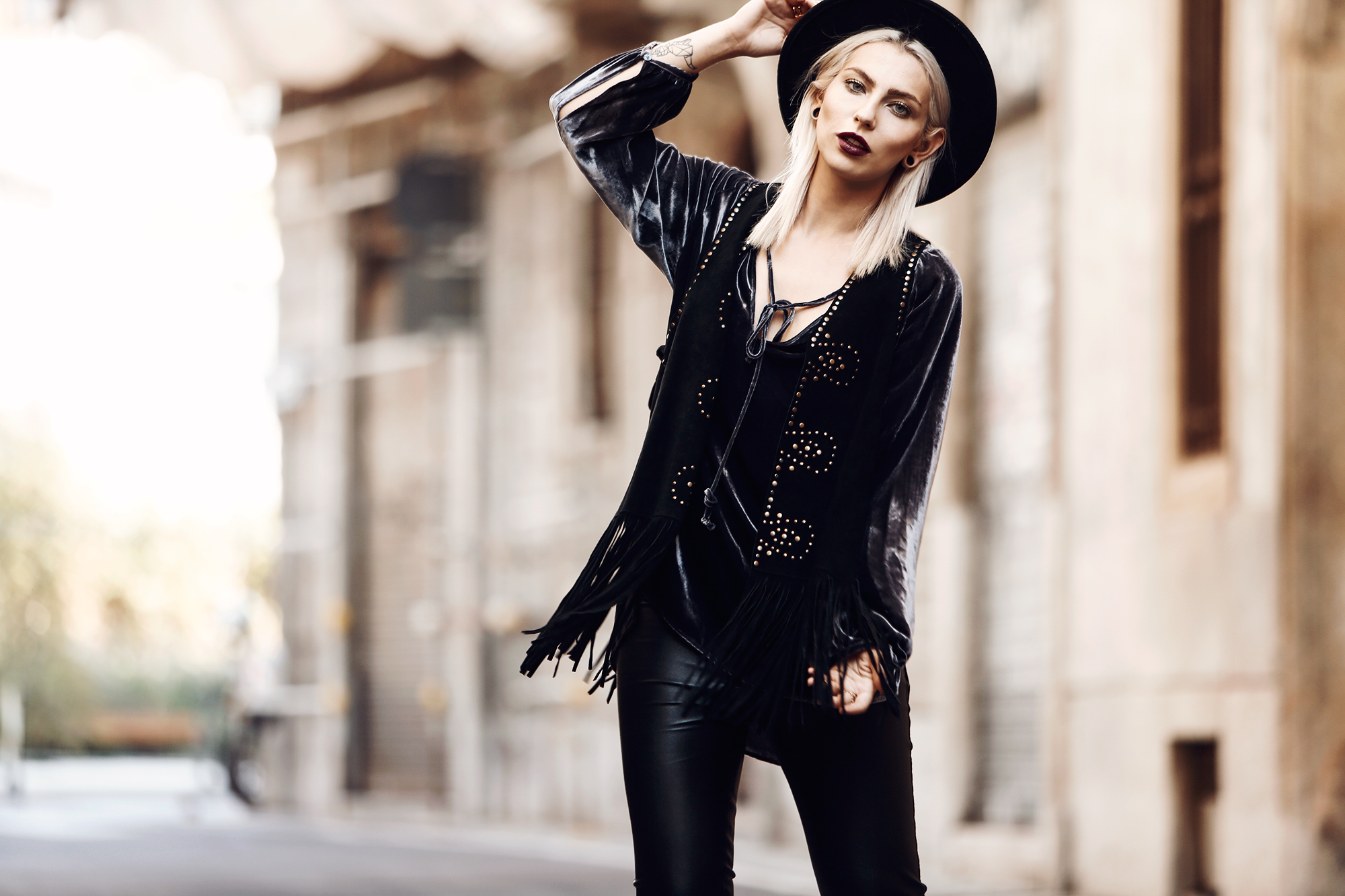 Nachdem meine Outfits in letzter Zeit recht schick waren, überkam mich in Mailand, wo es übrigens in der Sonne noch sommerlich warm war, die Lust nach einem herbstlichen Boho Look. Trotz Fransenweste und Festivalessentials ist das ein düsterer Look mit schwarzes Lederschlaghose und dunkellila Samtoberteil, der perfekt zur anmutigen Architektur Mailands passt :) After my last outfits have been very chic I wanted to wear something more boho again. Although this outfit is festival inspirated it’s dark and very edgy at the same time. После всех тех элегантных нарядов, которые вы видели в последние недели, в Милане мне захотелось надеть что-то в стиле бохо. Несмотря на жилет с бахромой и прочие фестивальные атрибуты, это довольно мрачный образ, но при этом он вполне уместно смотрится на фоне изысканной архитектуры Милана.   Street Style in Milan | via Masha Sedgwick wearing SLY010 Street Style in Milan | via Masha Sedgwick wearing SLY010 Street Style in Milan | via Masha Sedgwick wearing SLY010 Street Style in Milan | via Masha Sedgwick wearing SLY010 Street Style in Milan | via Masha Sedgwick wearing SLY010 Street Style in Milan | via Masha Sedgwick wearing SLY010