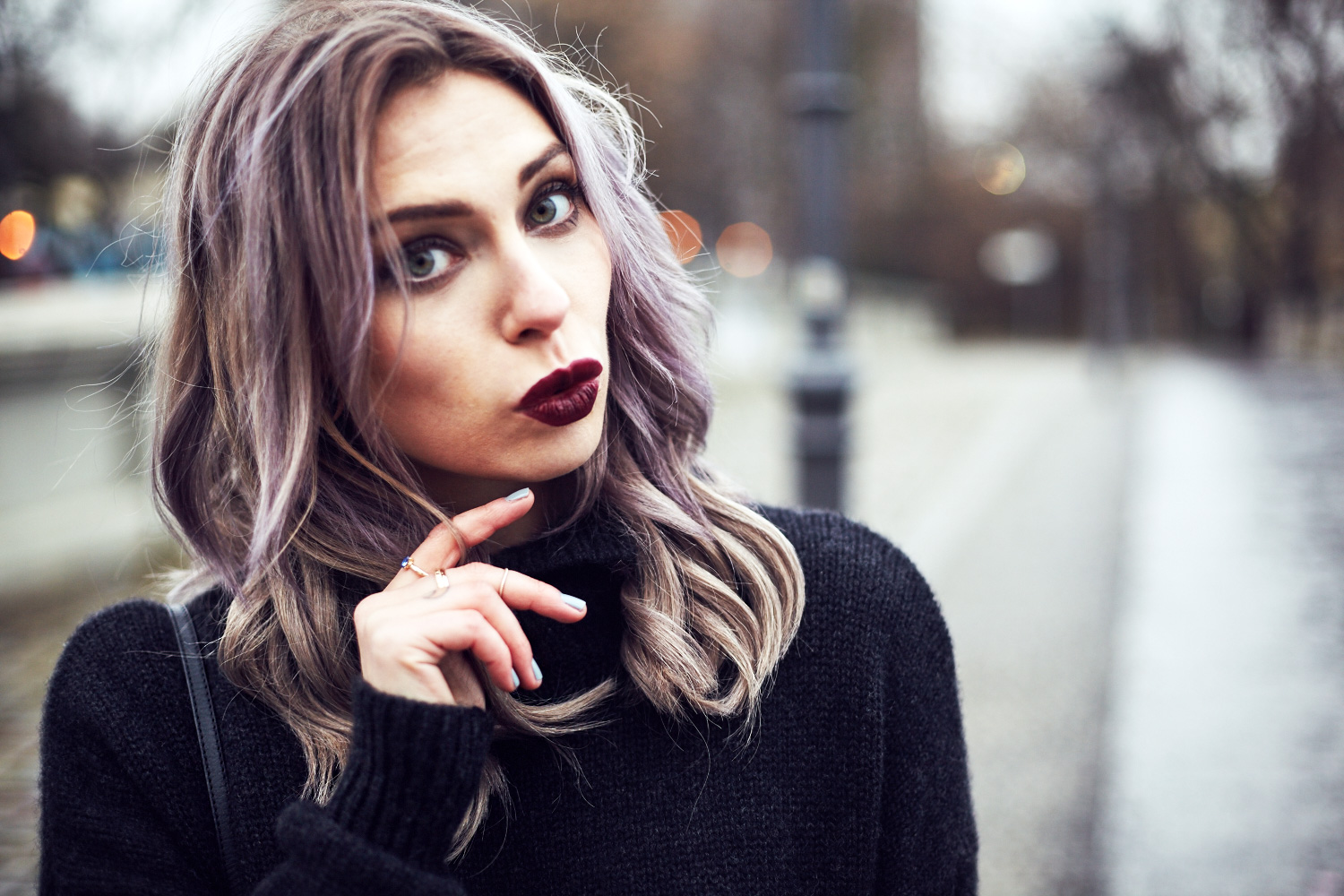 Richtig schön! Die Bluse unter dem Pullover sieht so hübsch aus! Und ich finde die Farbkombination deiner Lippen und Nägel auf dem dritten Bild ganz wunderbar!