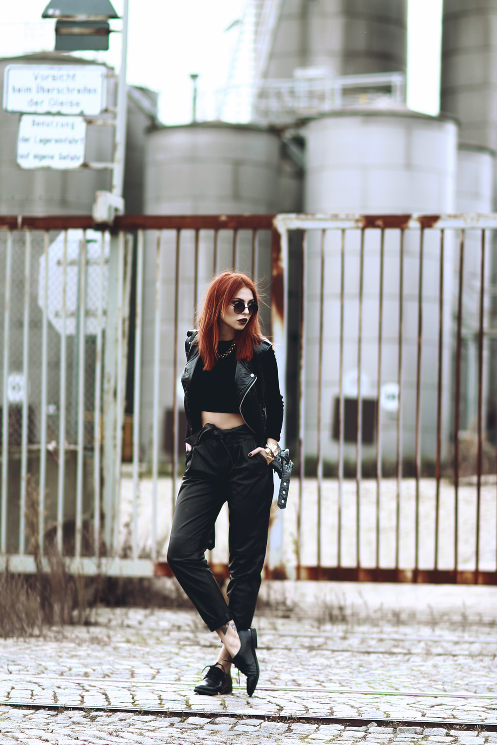 und dein neues outfit hier sieht ja mal der hammer aus. bin ganz hin und weg von der lederhose und wie du sie kombiniert hast, besonders mit der sonnenbrille