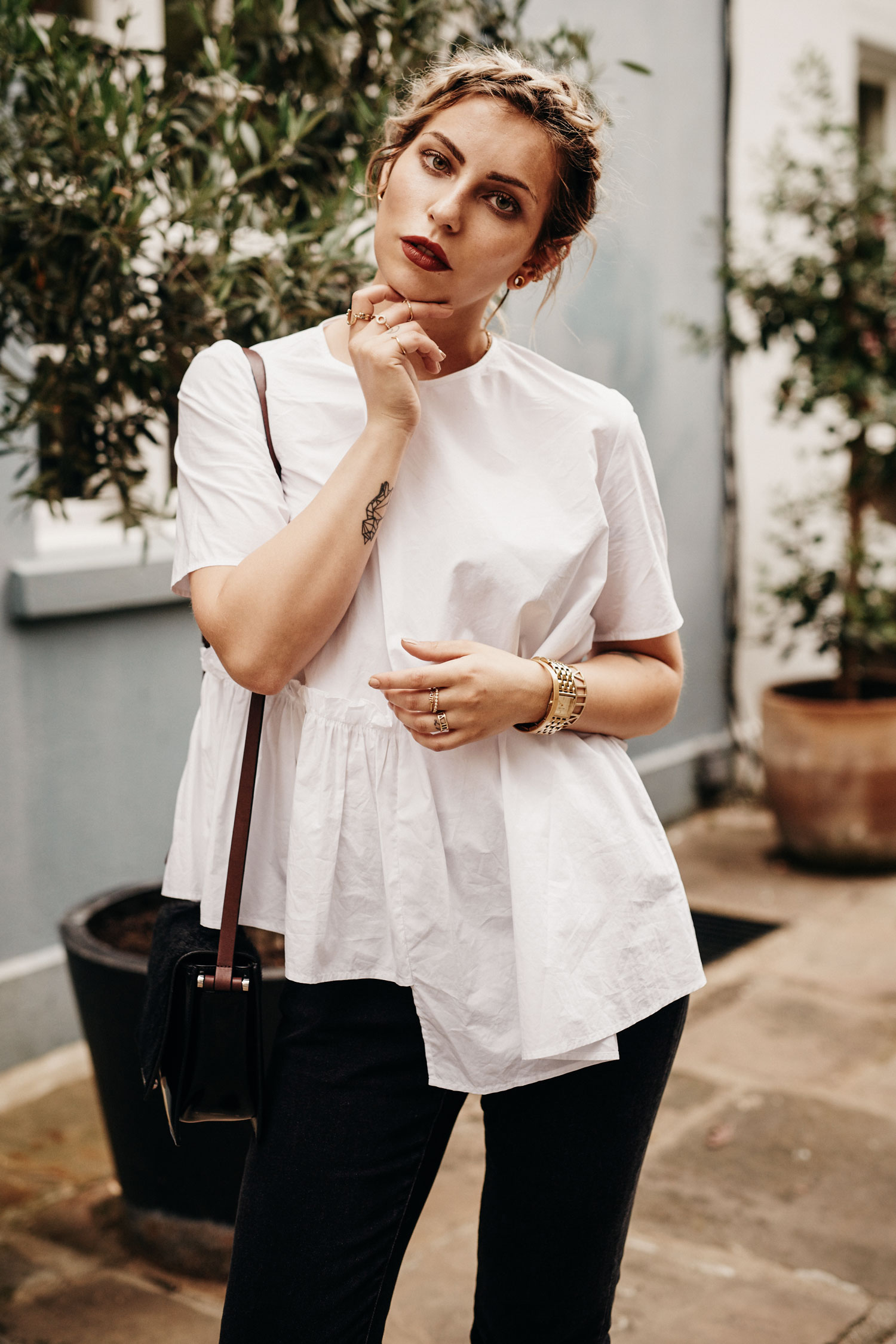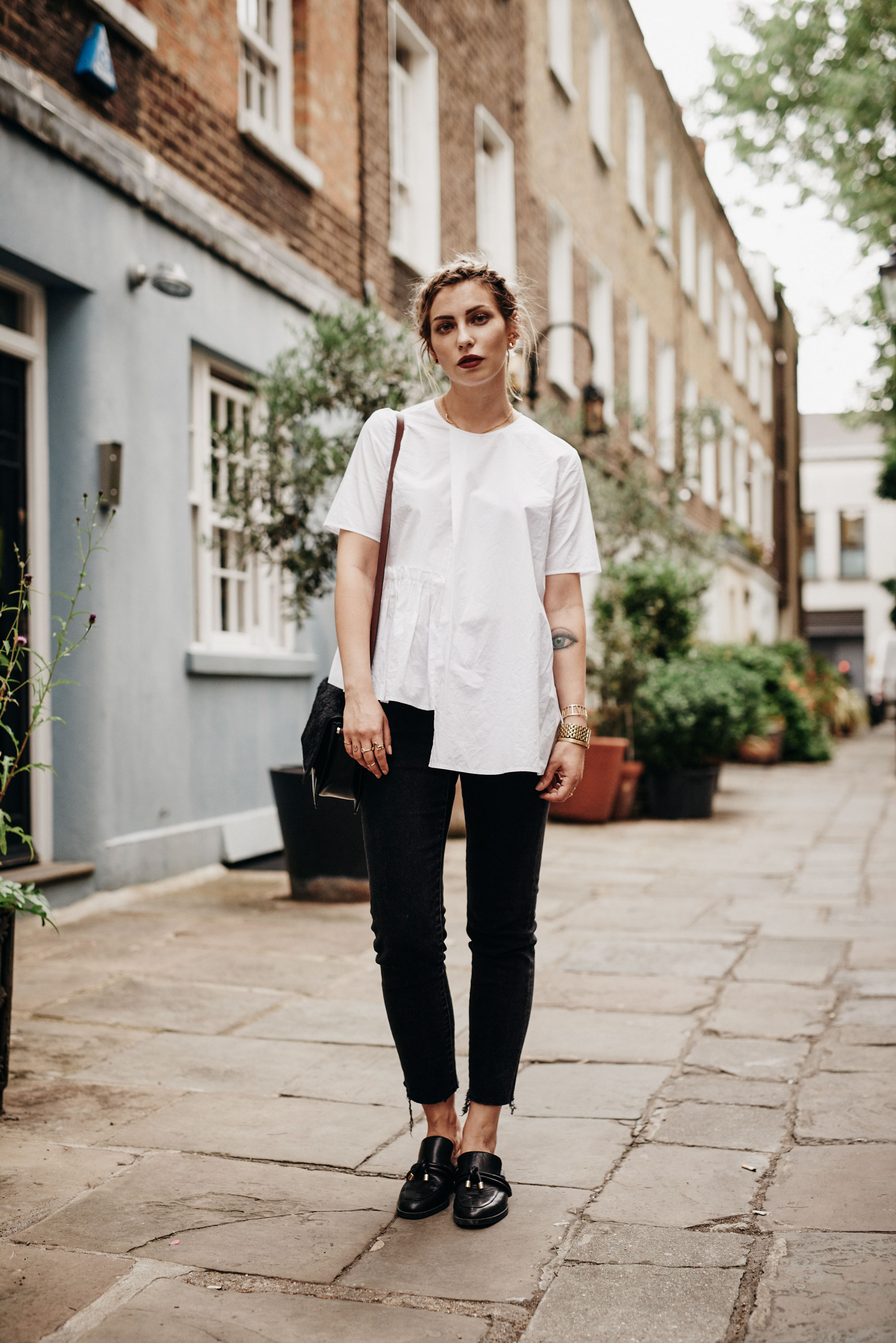 how to wear: black & white | fashion style: classy, chic, edgy, office, dinner | white blouse, black jeans, mules how to wear: black & white | fashion style: classy, chic, edgy, office, dinner | white blouse, black jeans, mules how to: hair braid style | tutorial its all about the details