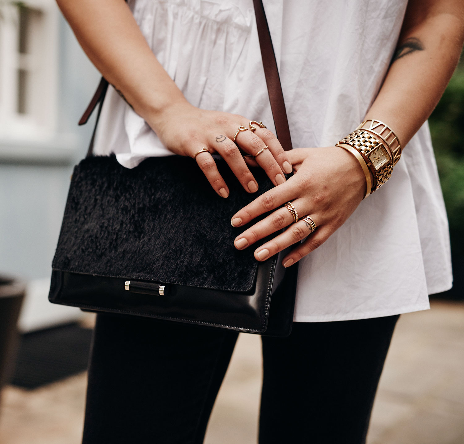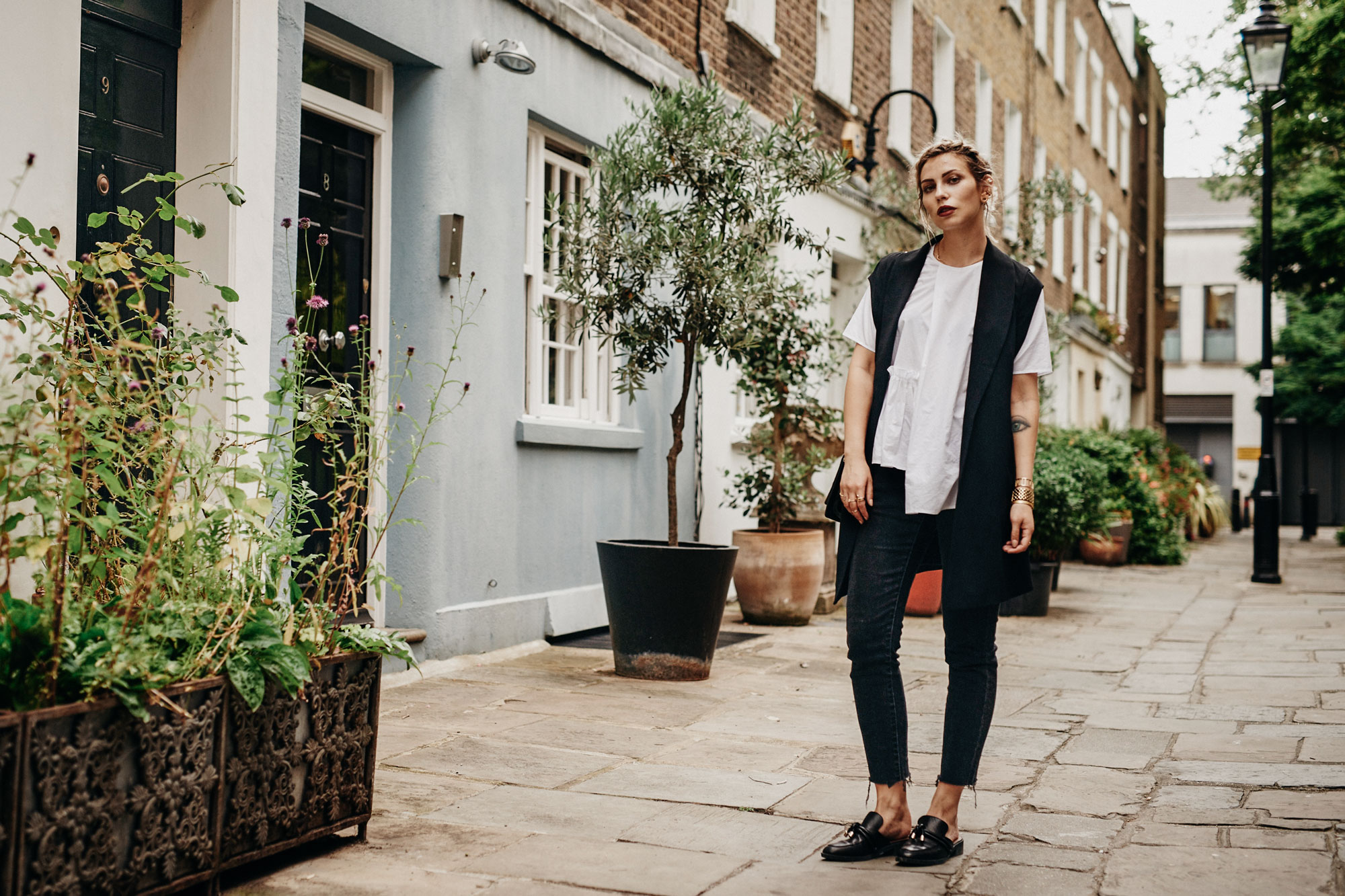 The Look jeans: Cheap Monday shirt: COS mules: &otherstories bag: By Malene Birger vest: Laurèl ear clip: Jane König & Astrid & Miyu rings: Georg Jensen