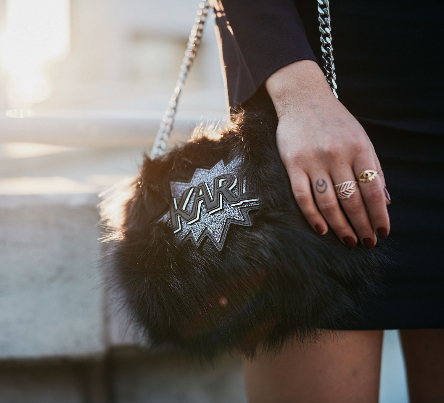 outfit in blue | blue, studded coat from Malene Birger AW16, fluffy fake fur bag from Karl Lagerfeld in dark blue | style: casual, chic, sexy | fashion. outfit in blue | blue, studded coat from Malene Birger AW16, fluffy fake fur bag from Karl Lagerfeld in dark blue | style: casual, chic, sexy | fashion