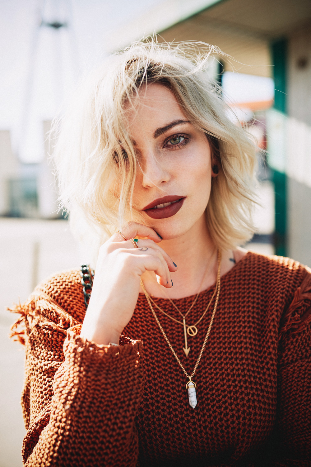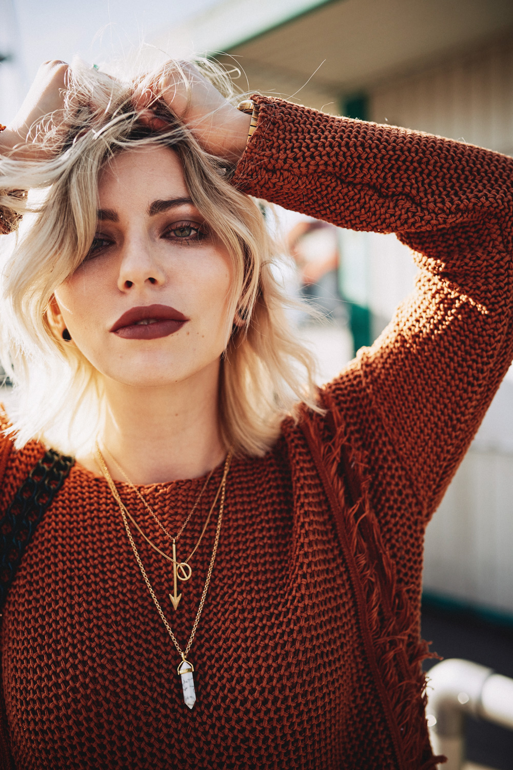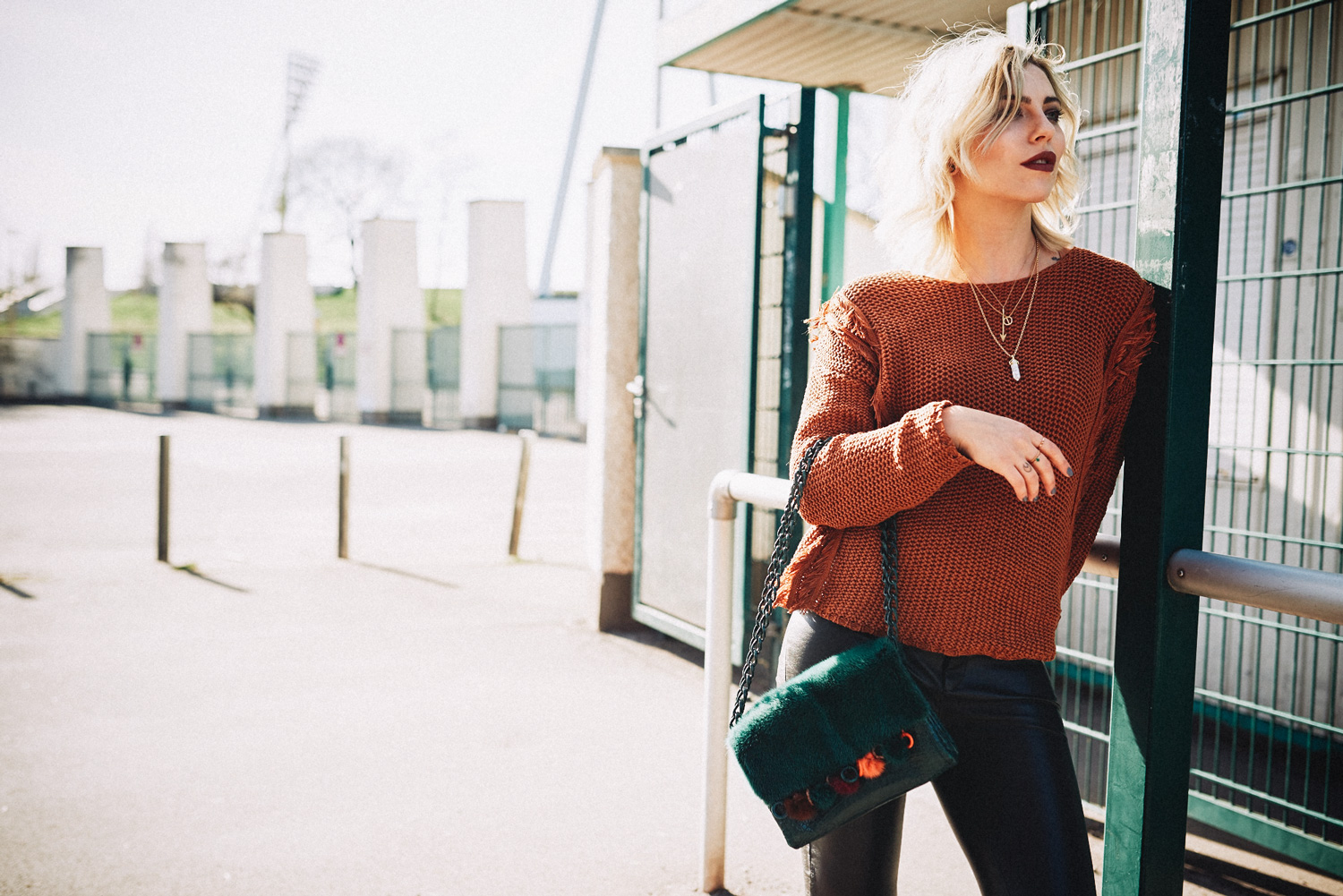 Сейчас, когда вы читаете эти строки, я,скорее всего, нахожусь в самолете, летящем в США! Моей первой остановкой будет Даллас, где я собираюсь принять участие в интересном мероприятии для блогеров, а потом я отправлюсь в Лос-Анджелес на фестиваль Coachella! Я уже была там в прошлом году и получила просто невероятное удовольствие, поэтому в этом году я решила поехать туда снова – и уже заранее радуюсь долгожданной встрече с друзьями!   Фестивальный сезон еще не начался, но я уже начала к нему готовиться, и мой сегодняшний образ, состоящий из легкого джемпера с бахромой и балеток на шнуровке, вполне соответствует моему фестивальному настроению! Удачным дополнением к этому образу служит сумка бутылочного цвета (мой любимый цвет!) с помпонами – эта легкомысленная деталь, которую я открыла для себя в этом сезоне, создает настроение бохо, даже когда я нахожусь в Берлине.
