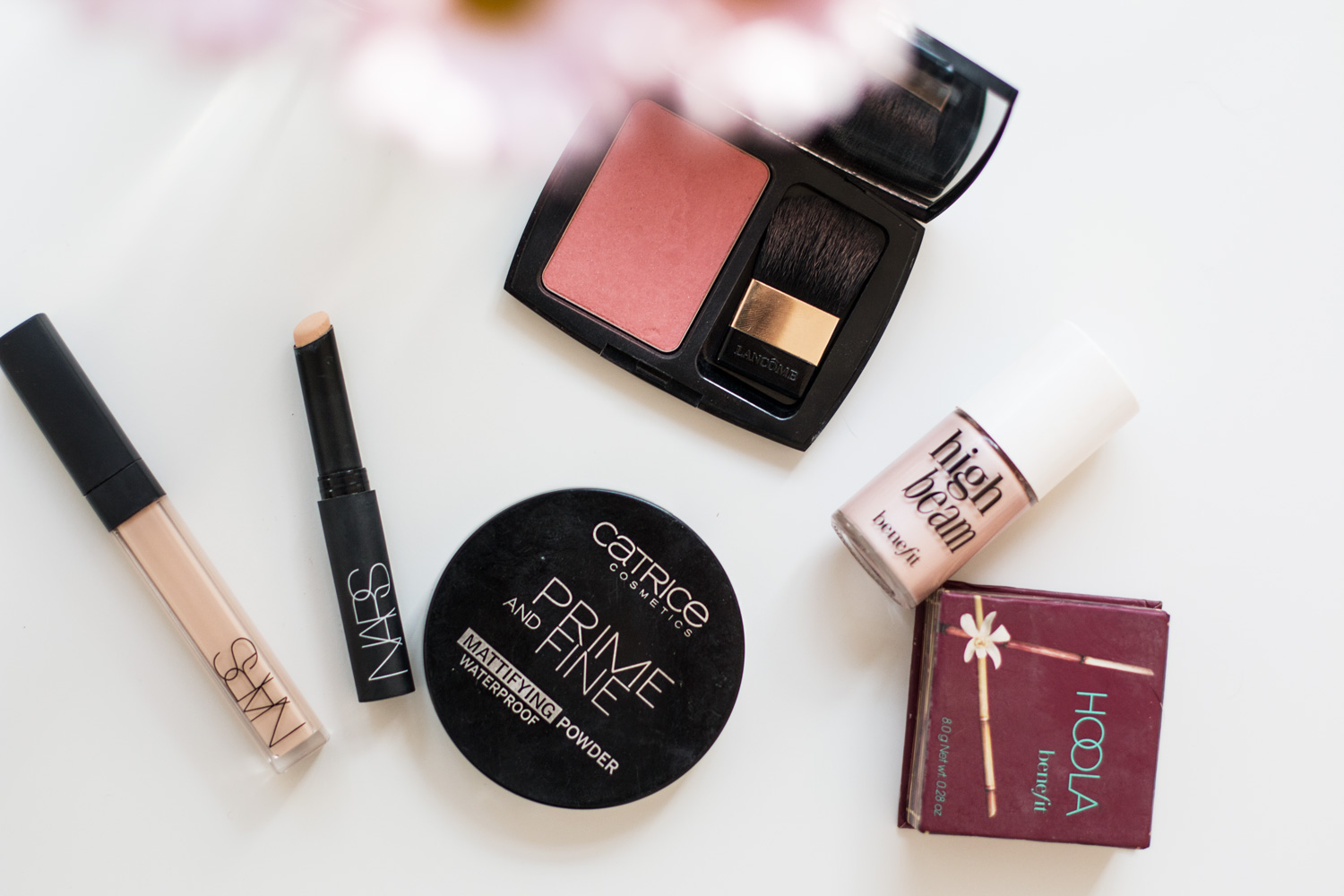 Es gibt ein Produkt, das würde ich als beste Erfindung nach dem Rad bezeichnen: den Concealer. Auf meiner langen Suche nach dem perfekten Concealer habe ich vor einem Jahr die Concealer von Nars (u.a. radiant creamy concealer, light 2) entdeckt und bin ihnen seitdem treu. Generell würde ich mich als großen Nars-Fan bezeichnen, denn bisher ist mir kein Produkt von denen untergekommen, das mich enttäuscht hätte – im Gegenteil! Das einzige Problem an Nars: es ist nicht in Deutschland verfügbar, deswegen muss ich mir das immer im Sephora kaufen (gut, dass sie endlich auch nach DE liefern…). Was ich dagegen hier bekomme, sind all die anderen Produkte, die ich immer so gern benutze, wie mein Lieblingsrouge (Lancome, Blush Subtil, rose sable), den absolut besten Highlighter der Welt (Benefit, highbeam) , den perfekten Bronzer fürs Contouring (Benefit, Hoola) und mein übliches Puder mit dem wohl besten Preis-Leistungsverhältnis (Catrice, prime & fine, 010). All diese Produkte sind essentiell als Grundlage für viele Make-up Looks. daily-make-up-1