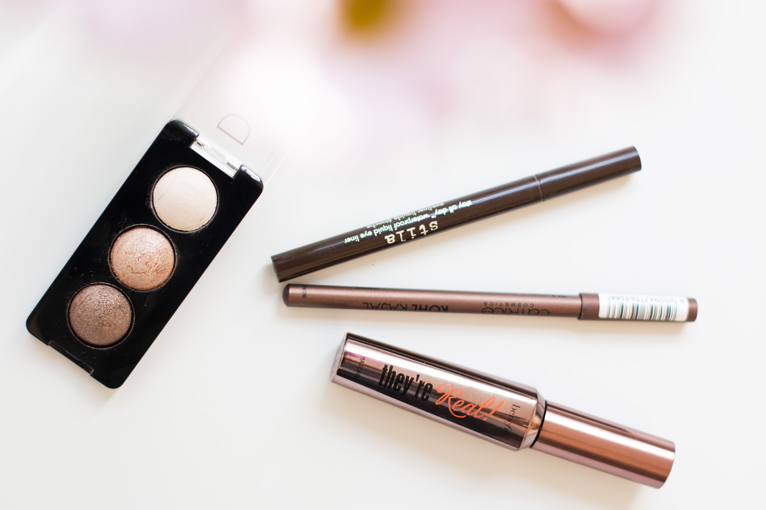 Meistens benutze ich für meine Augen die Naked Palette, doch wenn ich mal weniger Platz habe im Koffer tut’s auch eine kleinere Palette (Catrice, Deluxe Trio). Den mittleren Ton trage ich auf das gesamte Lid auf und den dunkleren Ton in die Lidfalte und verblende ihn ein bisschen. Den hellsten Ton benutze ich als Highlighter unter den Augenbrauen und auf der Nase. Auf dem unteren Lid trage ich einen bronzenen Kajal(Catrice, Brownzer) auf und auf dem oberen Lid ziehe ich einen Lidstrich mit einem braunen Eyeliner (Stila, dark brown). Zum Schluss tusche ich noch die Wimpern mit dunkelbrauner Wimperntusche (Benefit, beyond brown). daily-make-up-7 daily-make-up-6