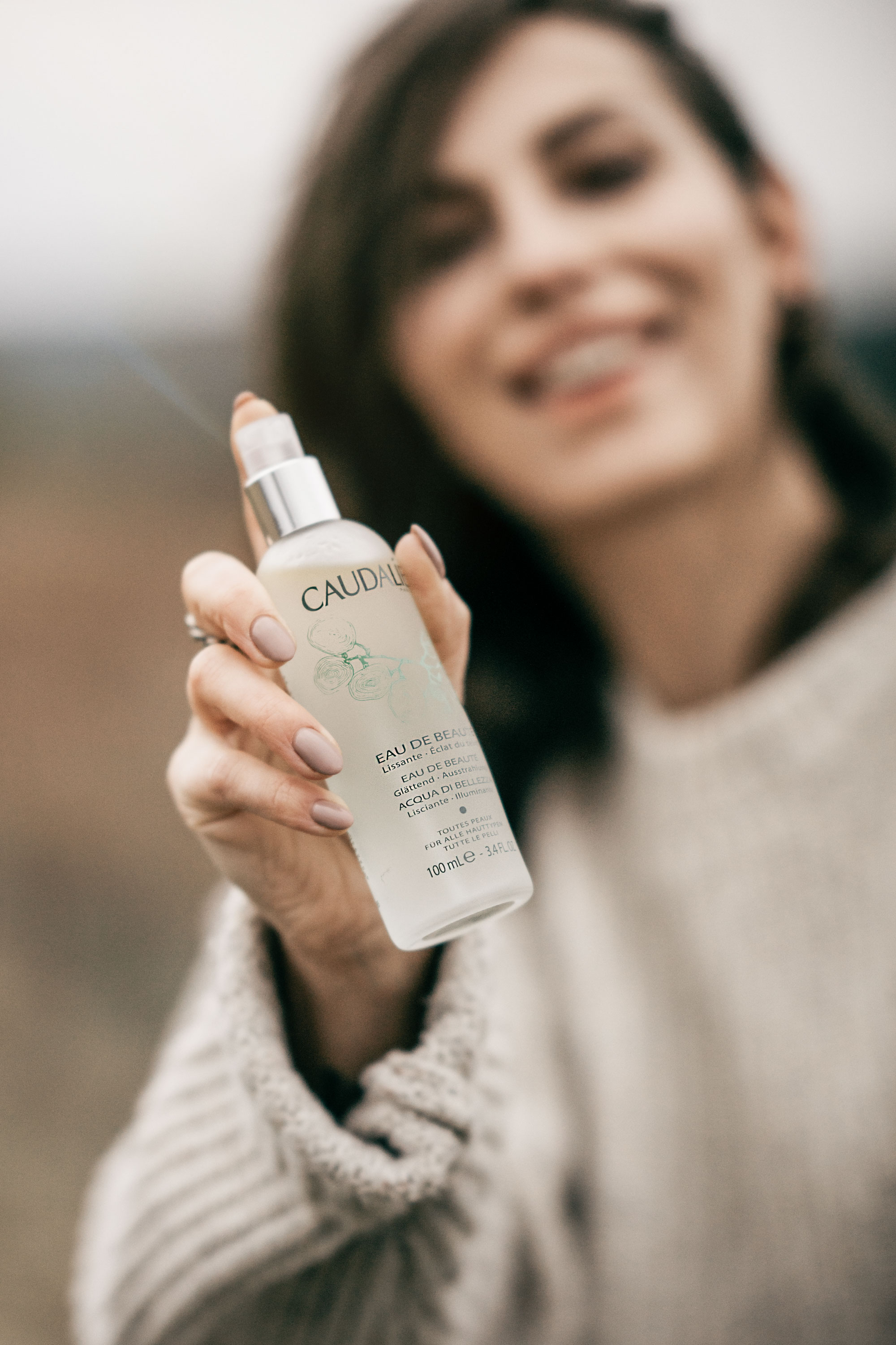 Caudalie ist spezialisiert auf Wirkstoffe, die aus der Weintraube entstehen. Denn die meisten Caudalie Produkte beinhalten innovative und patentierte Moleküle der Trauben und werden als „offene“ Formel weiterentwickelt, um stets verbessert werden zu können. Nur so kann die höchste Wirksamkeit der Produkte garantiert werden.   Einer der absoluten Bestseller und mein persönliches Lieblingsprodukt ist das Eau de Beauté.   Auch hier spielt die Weintraube wieder eine wichtige Rolle. In Verbindung mit Extrakten aus Rose lässt das Produkt den Teint strahlen und frisch wirken. Und nicht nur der Duft des Eau de Beauté sorgt für ein sofortiges Spa Feeling, sondern auch die Kombination aus Benzoeharz und Myrrhe mit den Extrakten aus Orangenblüte beruhigen und regenerieren die Haut. Durch das für seinen straffenden Effekt bekannte ätherische Rosmarinöl und die belebenden Essenzen aus Melisse und Minze werden Poren minimiert und es verfeinert die Gesichtszüge und ist somit ein echter Allrounder im Alltag.