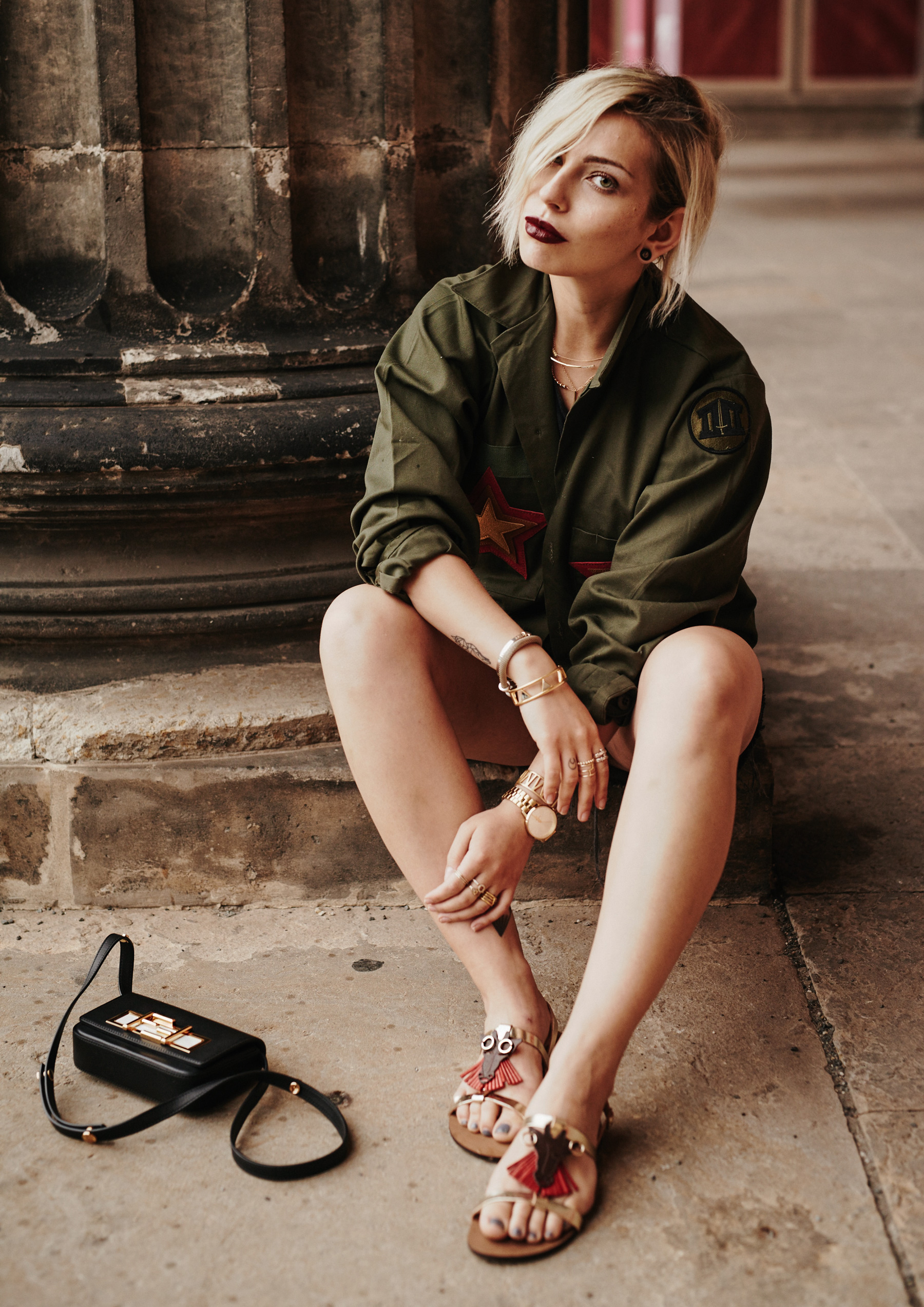 Sehr cooler Look! Ich liebe diese Militärjacke und die Schuhe sind wirklich etwas besonderes! :)