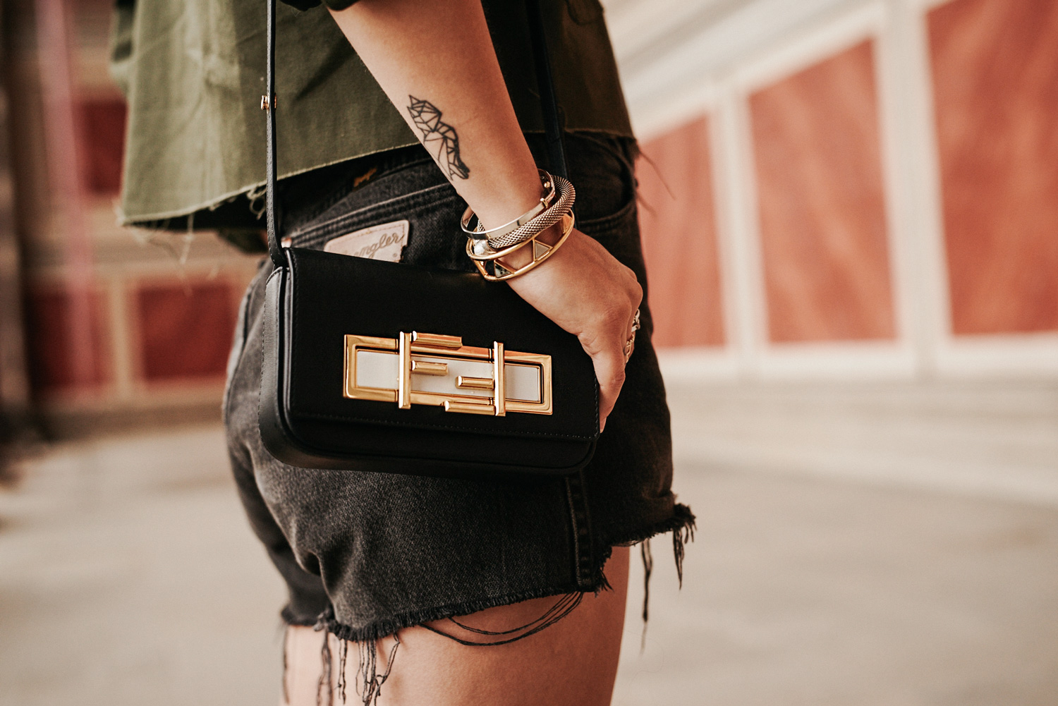 Der Sommer ist ganz offiziell angekommen in Berlin und auch ich bin in Sommerstimmung und habe meine LA Outfits nach Berlin gebracht. Zumindest diesen typischen lässigen und fast schon bunten Safari-Look, deren Highlight die Jacke und die Schuhe sind. Habt ihr den Büffel oben drauf bemerkt? Doch mein absolutes Lieblingsstück ist meine neue Tasche. Ich bin einfach SO in love und stolz auf mein neues Baby!