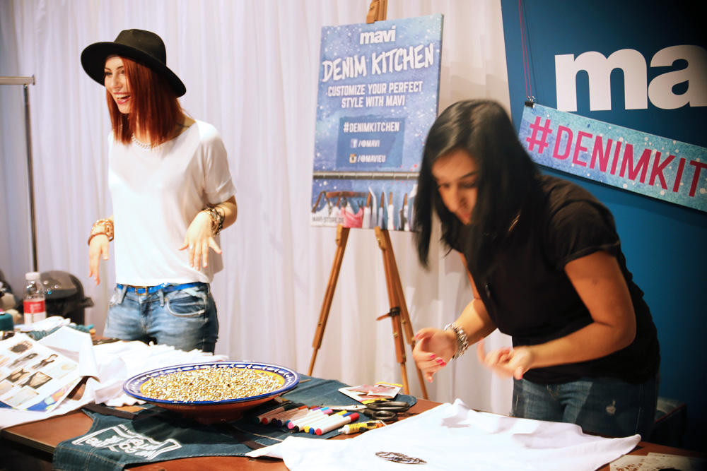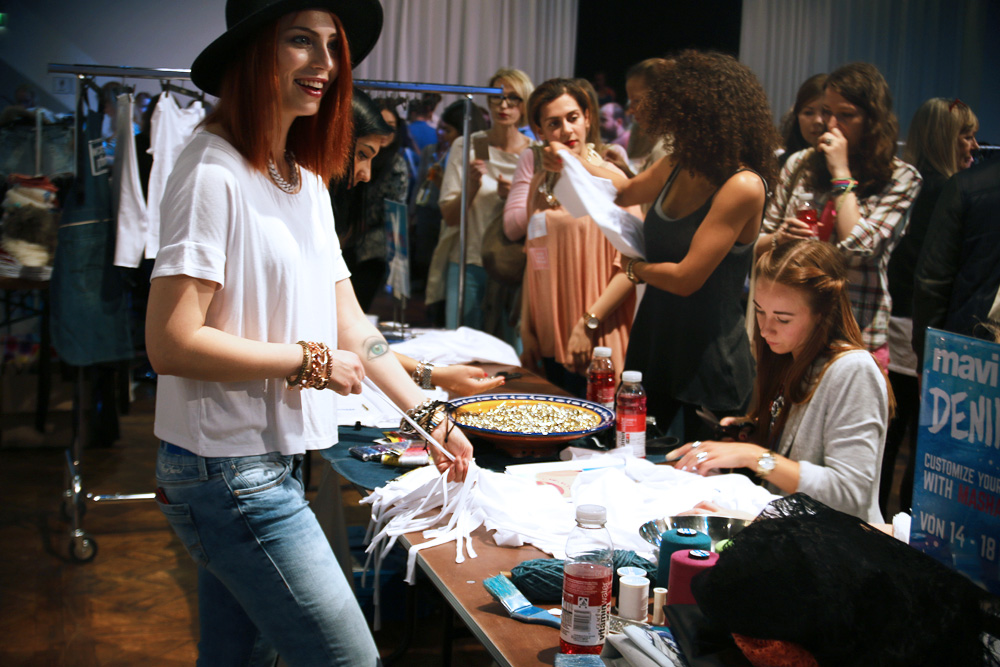 Wie ihr sehen könnt, war der Ansturm auf meine Denim Kitchen riesig und zusammen haben wir T-Shirts gebastelt bis uns T-Shirts und Material ausging. Später hatte Mavi mir zugeflüstert, dass es wohl noch nie so einen Ansturm auf die Denim Kitchen gab. Wir haben einen Rekord gebrochen :DD