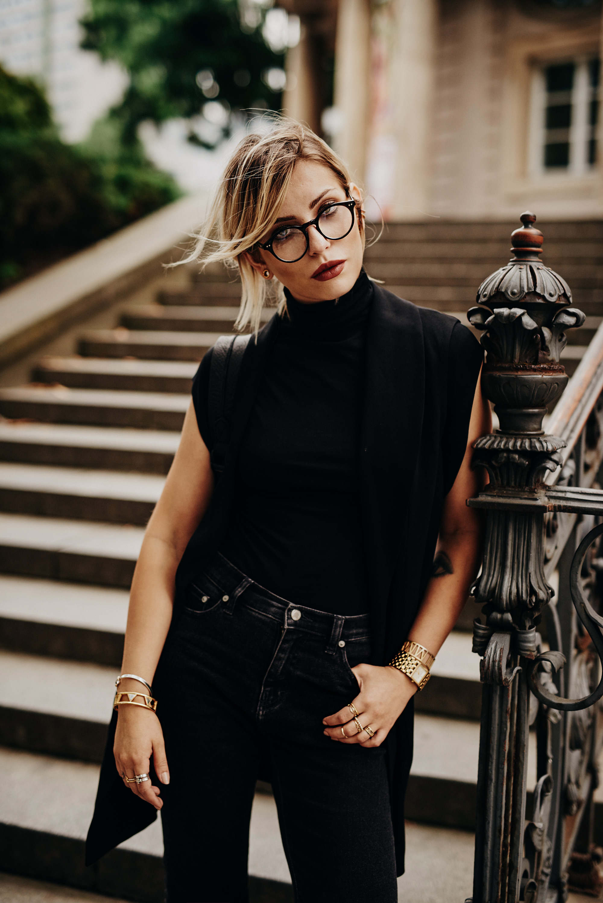 For some reason I’m hugely attracted to black, it’s the color (or non-color) that I keep returning to, no matter what. Back to black – to me that is synonymous with back to the roots. I always loved it, even in my earliest days of developing a fashion sense I tended to prefer #allblackeverything looks. I do allow for some grey and blue, on occasion, but black’s always’ been closest to my heart. It has simply always been like that.   I felt it strongly yesterday, as I sorted through some old clothes and reveled in memories. In retrospect, I could see that while I always loved it like no other color, I could only really start to fully live my passion in my teens. Since then, I never looked back. Occasional affairs with other colors notwithstanding.   Well, I can say that this particular look is everything but a guilty style pleasure. Sure, there are parallels to my early years, but it may as well be a pic from the future. That’s what it boils down to: this look is timeless. Maybe that’s the essence of true love as well – it lasts forever.