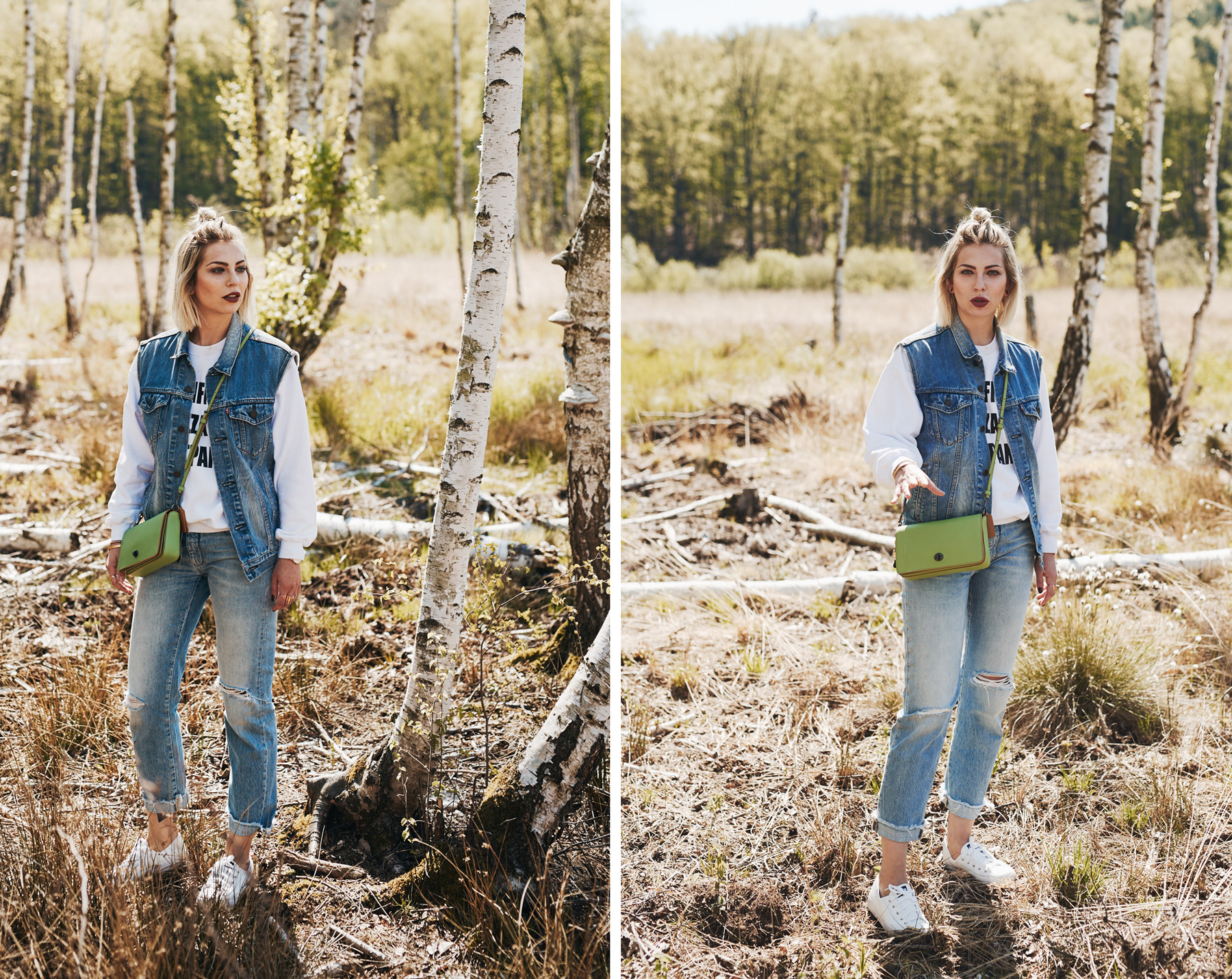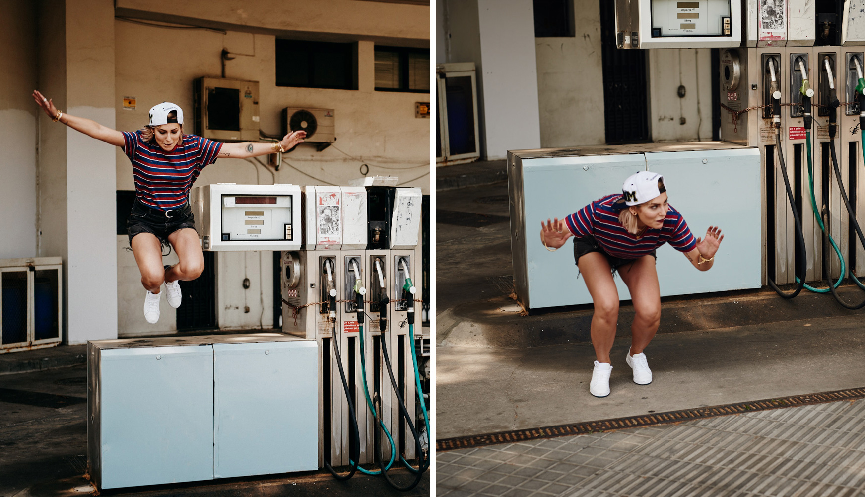 2. Wie super, ich musste bei ein paar wieder total grinsen! Da sieht man erst, was alles zu einem gelungenen Bild dazugehört: keine Leute, die im Hintergrund herumrennen, kein Wind aus der falschen Richtung, und natürlich auch immer die richtige Balance, ob auf High Heels oder Steinen im See. Mein allerliebstes Bild ist der Sprung von der Tankstelle! Der Blick ist einfach zuuuu cool!