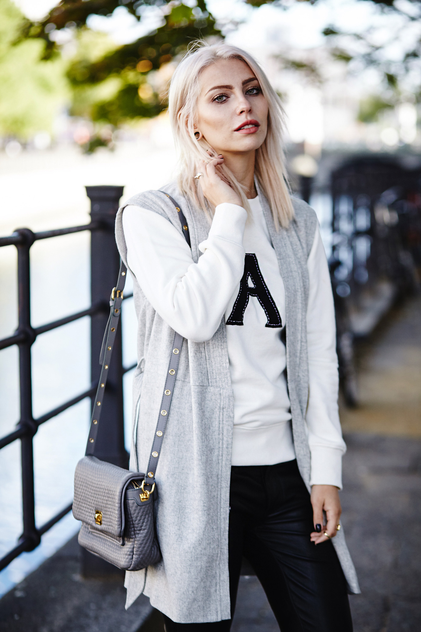 Jaja, kaum wird es etwas kühler blühe ich wiederrum total auf. Im Sommer weiss ich ja teilweise nie so recht was ich anziehen soll, weil ich natürlich möglichst wenig und möglichst luftig angezogen sein will, aber sobald die Temperaturen sinken kann man seine Westen und Jacken und Pullis endlich wieder auspacken und miteinander kombinieren! Außerdem kann ich endlich wieder lange Hosen, aber vor allem Lederhosen tragen, ohne so eklig zu schwitzen! Juhu!   Um gleich ein bisschen herbstlicher (aber auch nicht zu herbstlich, so bereit bin ich dann doch noch nicht…) zu starten gibt es einen College-inspirierten Look, wie es in Zukunft übrigens viele geben wird, weil das aktuell mein absoluter Lieblingstrend ist :D Dazu sind meine neuen abgefahrenen Schuhe natürlich teilweise Schuld, aber auch dieser supercoole Sweater mit dem A, das wohl für Alexa Chung steht, die das Teil entworfen hat. Ob mein Outfit wohl auch die Bestnote bekommen würde? As soon as it gets colder here in Berlin I can wear my favorite items again, like sweaters, jackets, vests aaaand leather pants of course. Wohoo! Today’s outfit is inspired from the college trend, which is my absolute favorite trend ever. I love wearing loafers and blazers and something between casual and office :) В Берлине стало немного прохладнее, и это меня очень радует. Наконец-то можно доставать жилеты, куртки и пуловеры – и, конечно, кожаные брюки! Ура! Мой сегодняшний образ вдохновлен стилем «колледж» – на сегодняшний день это мой самый любимый стиль! Я просто влюблена в мои новые туфли и в этот потрясающий свитер с буквой «А» от Alexa Chung!   Casual College Outfit | Masha Sedgwick is wearing a sweater from Alexa Chung for AG, black leather pants, grey Sonia Rykiel bag and grey Kala vest | Berlin street style Casual College Outfit | Masha Sedgwick is wearing a sweater from Alexa Chung for AG, black leather pants, grey Sonia Rykiel bag and grey Kala vest | Berlin street style Casual College Outfit | Masha Sedgwick is wearing a sweater from Alexa Chung for AG, black leather pants, grey Sonia Rykiel bag and grey Kala vest | Berlin street style Casual College Outfit | Masha Sedgwick is wearing a sweater from Alexa Chung for AG, black leather pants, grey Sonia Rykiel bag and grey Kala vest | Berlin street style Casual College Outfit | Masha Sedgwick is wearing a sweater from Alexa Chung for AG, black leather pants, grey Sonia Rykiel bag and grey Kala vest | Berlin street style Casual College Outfit | Masha Sedgwick is wearing a sweater from Alexa Chung for AG, black leather pants, grey Sonia Rykiel bag and grey Kala vest | Berlin street style width= Casual College Outfit | Masha Sedgwick is wearing a sweater from Alexa Chung for AG, black leather pants, grey Sonia Rykiel bag and grey Kala vest | Berlin street style Casual College Outfit | Masha Sedgwick is wearing a sweater from Alexa Chung for AG, black leather pants, grey Sonia Rykiel bag and grey Kala vest | Berlin street style