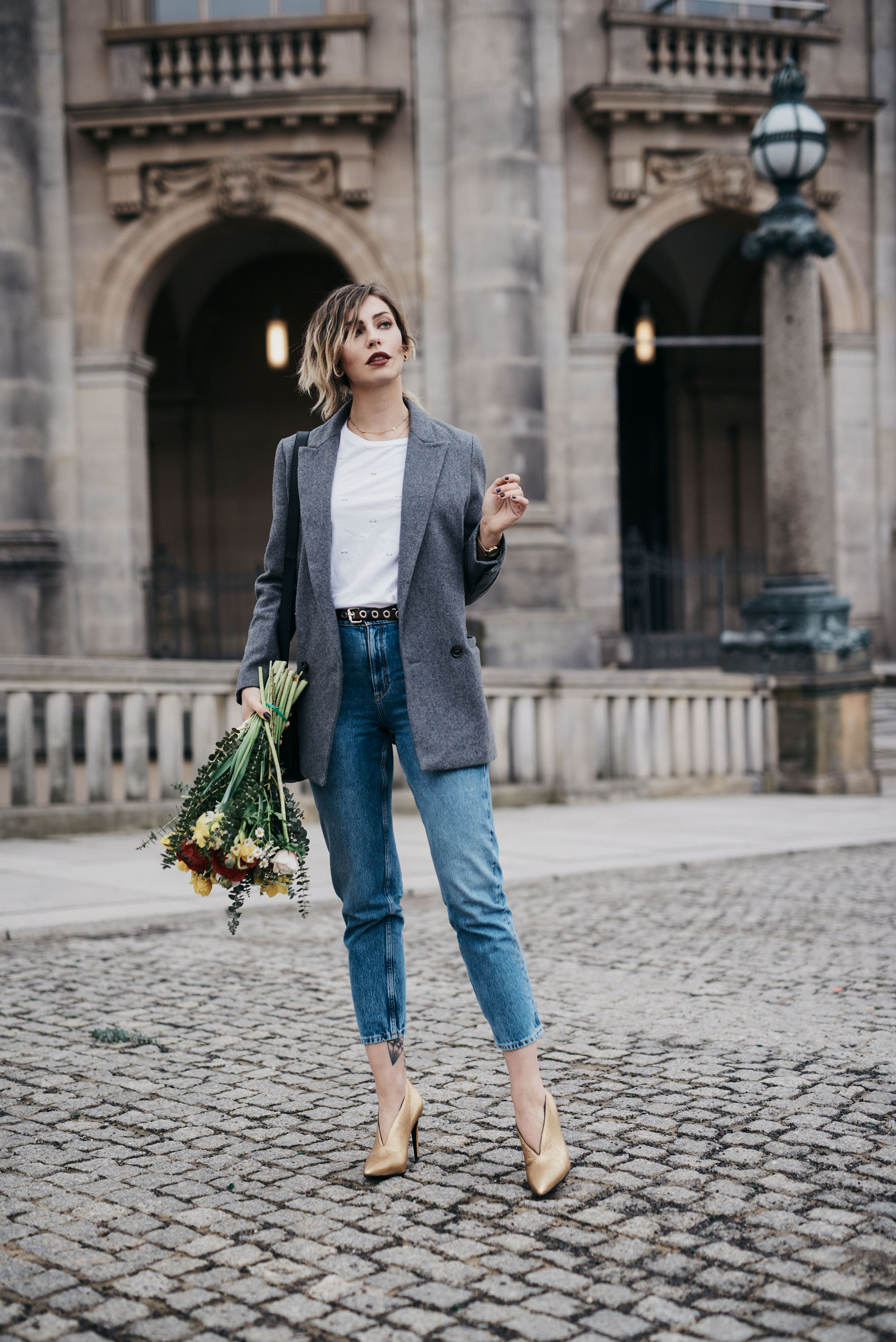 shirt: Kauf dich glücklich x Jane Wayne shoes: Ayde jeans: &otherstories blazer: Ganni bag: Kenzo
