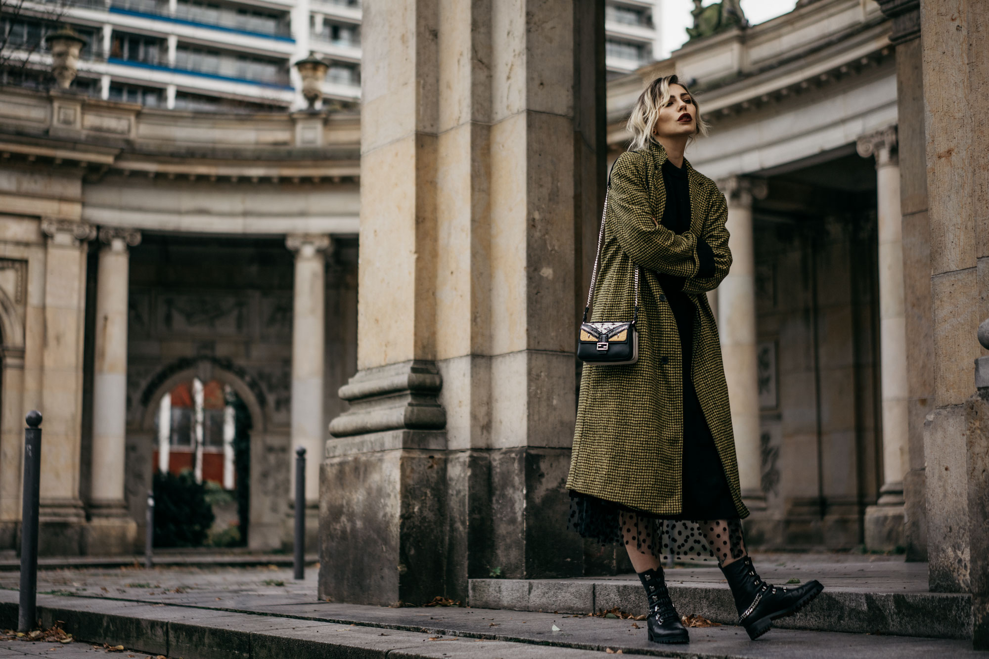 1 How to: Berlin street style | fashion & outfit | wearing: flat Christian Louboutin boots, dots dress, Haider Ackermann coat, small Fendi double Baguette bag
