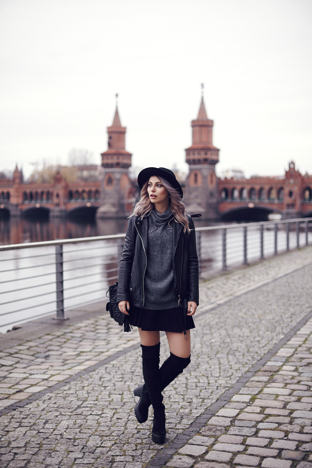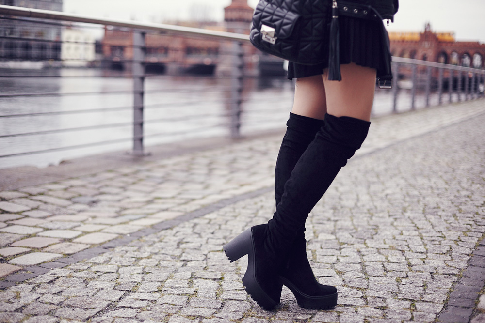 Es ist das erste Outfit im neuen Jahr und dann gleich in Overknees. Das Ding ist: eigentlich mag ich Overknees echt gern, aber ich finde es schwer sie alltagstauglich zu kombinieren, ohne dass es entweder peinlich (Stichwort Oranienburger) oder schrecklich (Stichwort: mit Hose drunter) aussieht. Das Outfit für das ich mich entschieden habe ich recht typisch für mich in grau und schwarz gehalten mit einem Faltenrock (uh la la!) und einem gemütlichen grauen Pulli, der ein bisschen lockerer sitzt. Dadurch dass das Outfit so etwas schlichter gehalten ist, sind die Overknees das Highlight und sehen auch im Alltag gut aus :) So this is my first outfit in the new year and yeah it’s sexy. The thing is: I really like Overknees, but I think it’s difficult to combine them for everyday use. Usually they look either embarrassing or terrible (keyword: with pants underneath). But this outfit is typical for me in gray and black with a pleated skirt and a cozy gray sweater. As the outfit is kept more casual the overknees are the highlight and can be worn in everyday life :)