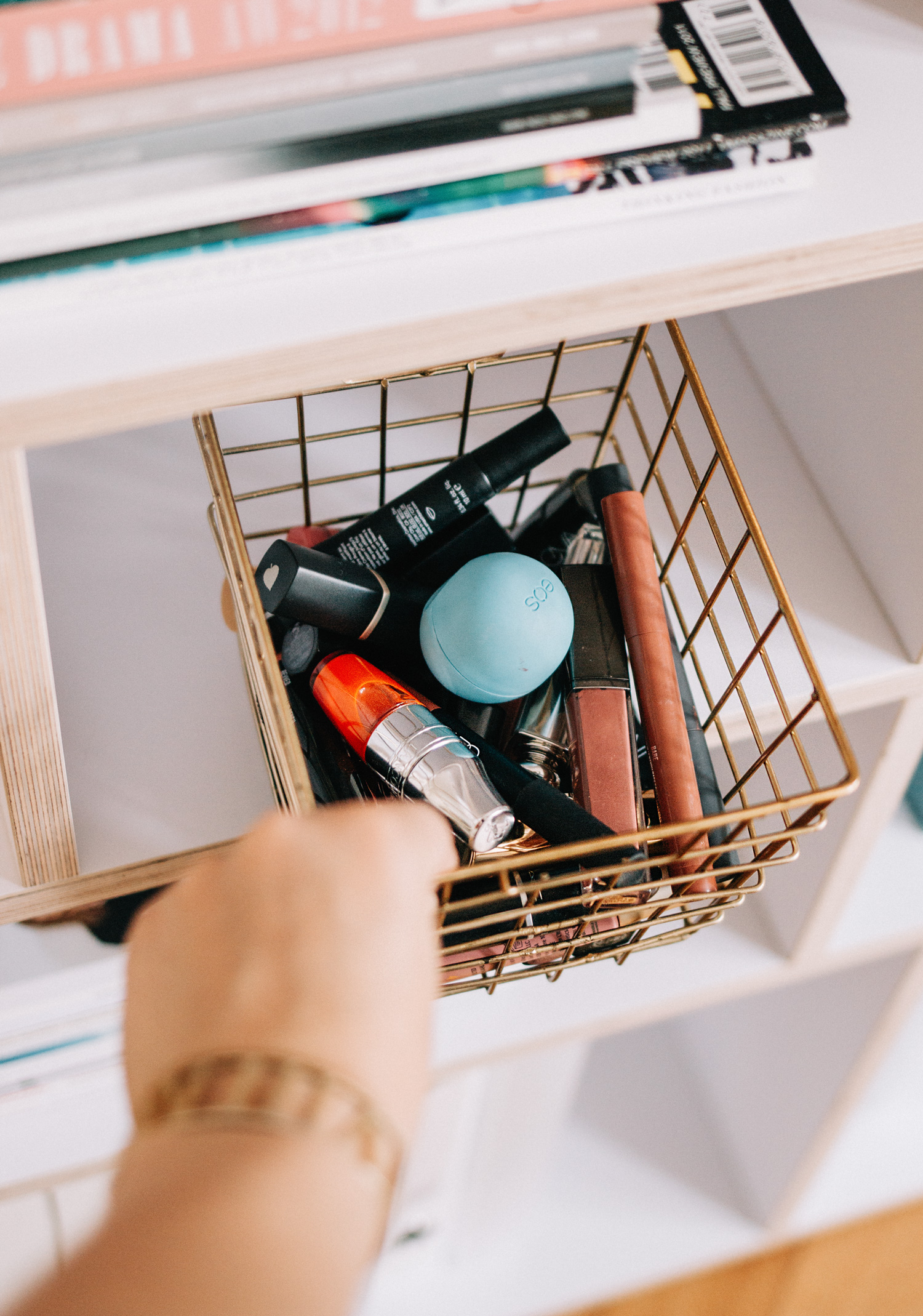 – I am prone to forgetting to eat and drink enough, and need to make sure I always have a bottle next to me to hydrate. That said, a carafe is of course a stylish alternative to a bottle. Every morning I put in an ingredient of choice (like berries, or limes…) and fill it with water. Both practical and very pretty to look at!   – Flowers make ever room that much friendlier! It need not always be a huge bunch, sometimes a small plant or two are enough to improve the atmosphere a lot.   – I didn’t want my ivy shelf to look too chaotic, so I bought little boxes and containers (e.g. by Hay and Muji) for all these small things that tend to fly around. Makes everything much more organized and clean straight away.   – No frame at hand? No worries! Sometimes I simply use a bit of black tape instead. A little touch to mix things up! Selected with care for long-lasting satisfaction.   – I really take my time when furnishing a place, it takes me ageeeees, and I don’t usually make spontaneous purchases. With hindsight, this approach really paid off – many of the accessories in my room (pictures, magazines, etc.) are many years old, and I still enjoy them a lot. Take it from me: select your items with care when it’s time to furnish a room, you will enjoy your furniture so much longer.