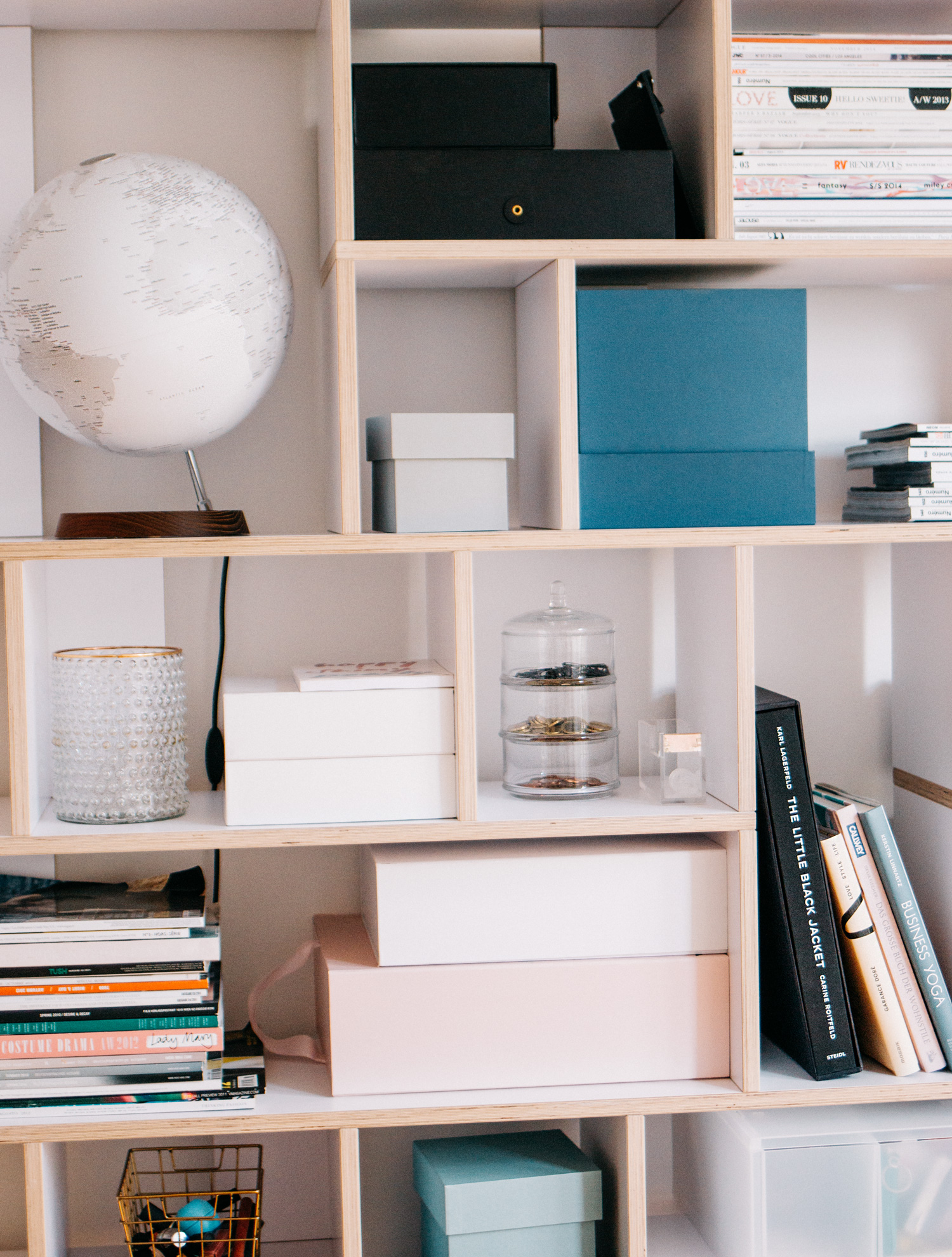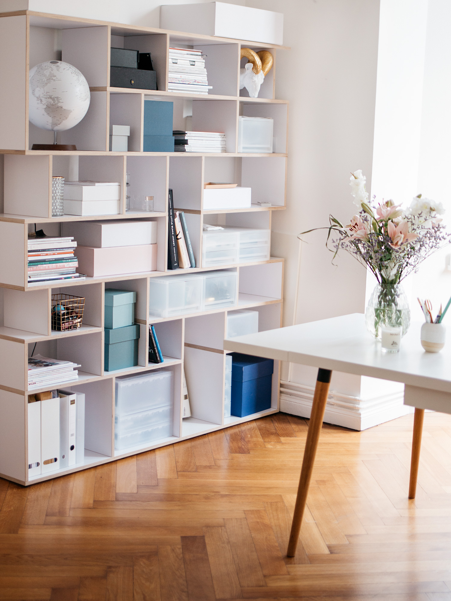 I’ve been announcing this for what seems like forever, but today’s the day, I’m going to show you my new study! I’m really proud to finally have a dedicated room for work, and excited that my first office turned out so beautiful!   What makes this room special is that many pieces you see here are unique items, which makes everything all that more personal. I spend the largest part of my time in this room here, so I wanted everything to be perfect, from storage to accessories. Mission accomplished!   Let’s start with my Tylko shelf, the modules of which I selected myself with help from a dedicated app that made it easy to get the exact measures I needed. The app is not only useful to get the height and width right, it also lets you select colour, depth and the specifications of each module – all super simple with an integrated selector. Tylko are not only selling shelves by the way, they have a wide range of furniture on offer. When the shelf arrived, I even managed to assemble the whole thing completely on my own! Of course it helped a lot that no screwing or drilling was necessary, all I needed to do was to plug together the massive wood slabs – job done. Easy breezy!