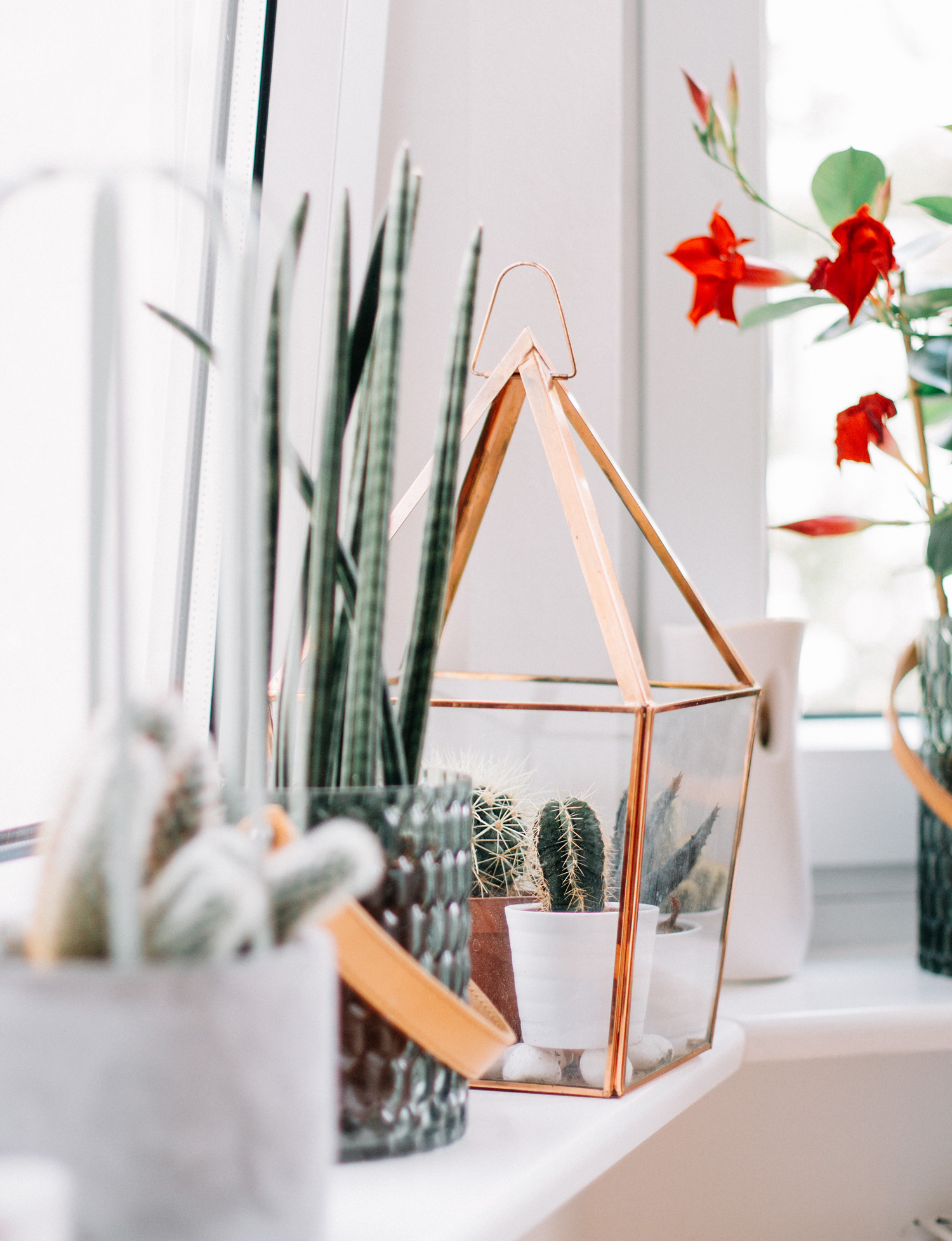 Eine Frage habe ich noch: Wie handhabst du es mit den Katzen, haben sie Raumverbot, oder sind sie gut erzogen, dass sie sich von Blumen und Kakteen fern halten? Wir haben nämlich zwei norwegische Waldkatzen, die sich immer sehr für alles interessieren und darum sind wir mit Pflanzen und Co. etwas vorsichtig. Hast du einen Tipp?