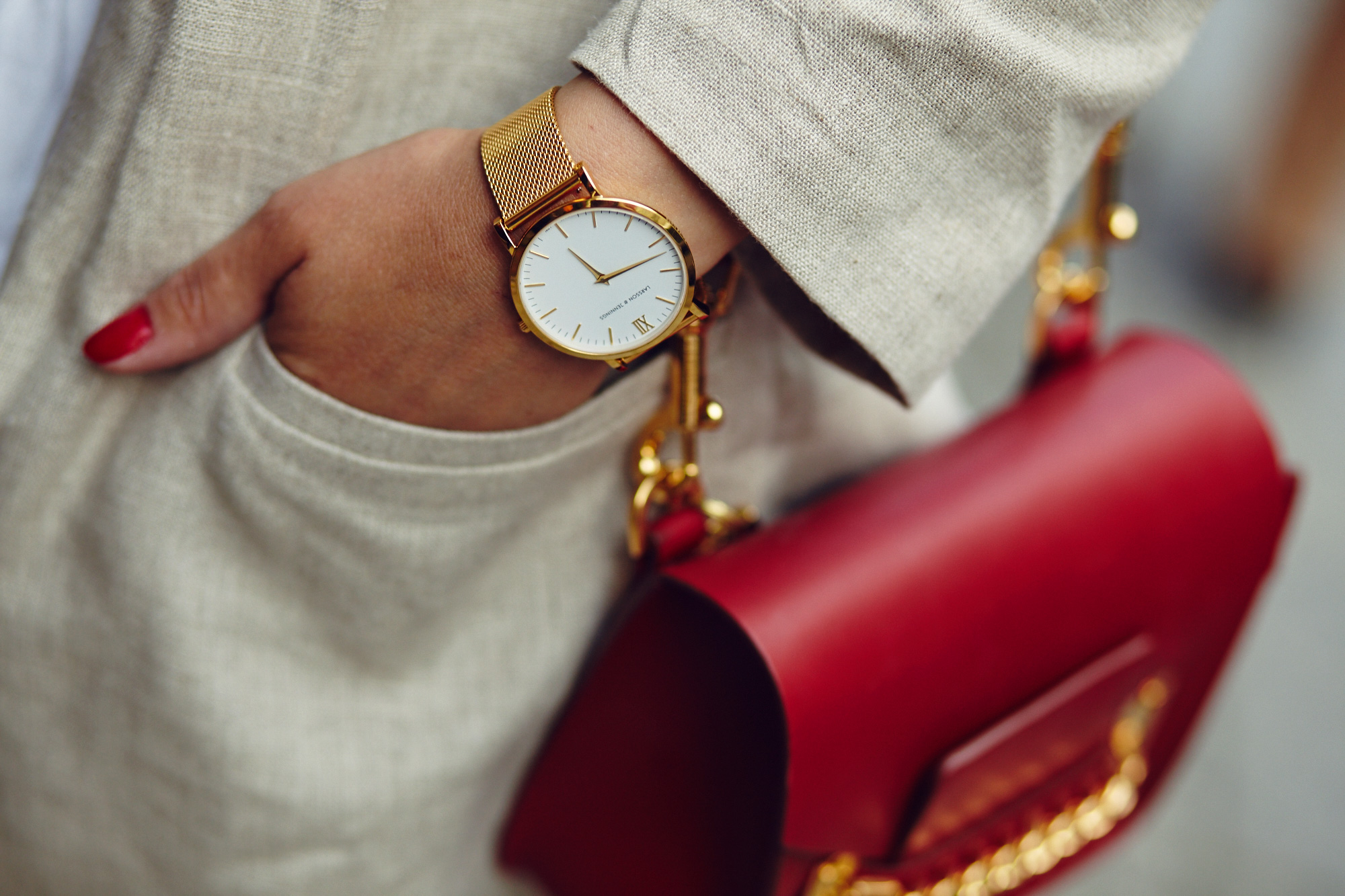 Например, черные брюки – пусть даже они не похожи на все остальные черные брюки – или бежевый льняной блейзер, идеально подходящий для летнего вечера. Это вещи, которые мы практически всегда носим с удовольствием, которые всегда уместны, а значит, просто обязательны в любом гардеробе. Но наряду с предметами гардероба, которые являются нашими неизменными фаворитами, есть еще и аксессуары, которые можно отнести к числу обязательных – в первую очередь часы. Красивые часы могут удачно дополнить любой образ, добавить к нему последний штрих и сказать очень многое о стиле той, которая их носит. Мои часы англо-шведской марки Larrson & Jennings,к примеру, говорят о том, что мне нравится простота и минимализм, и в то же время обращают на себя внимание своим размером – они типично мужские, а их стиль можно определить как «где-то между Лондоном и Стокгольмом».