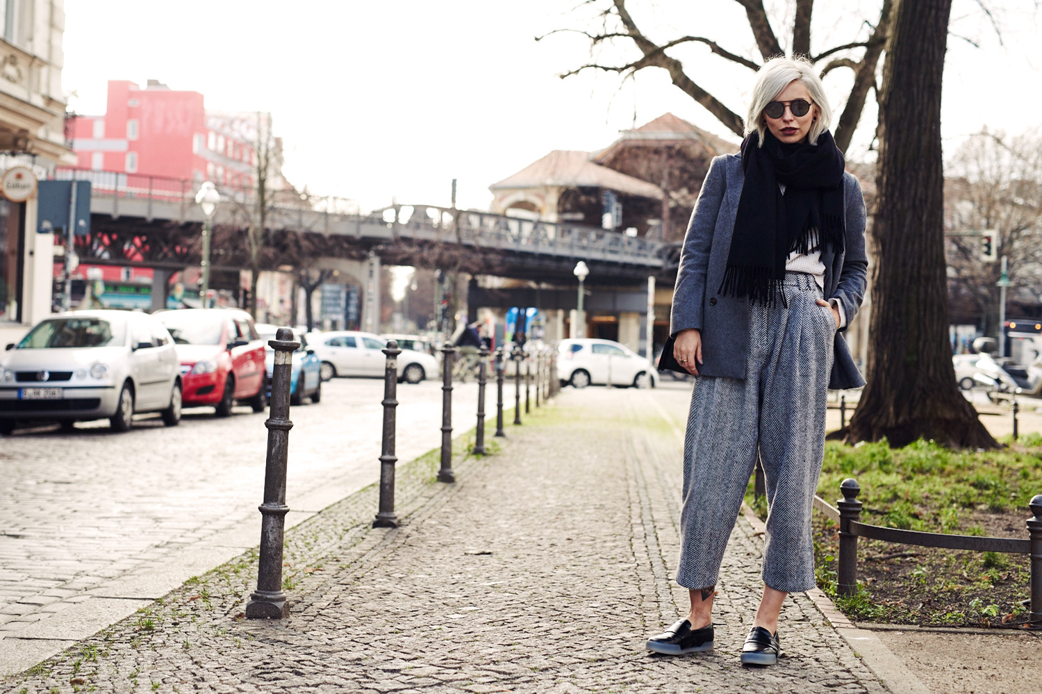 The Look oversized culotte | Line & Dot blazer | Ganni scarf | Acne Studios cashmere sweater | Unger shoes | 3.1 Phillip Lim bag | Lili Radu sunnies | Calvin Klein necklace | Luna via Stilnest