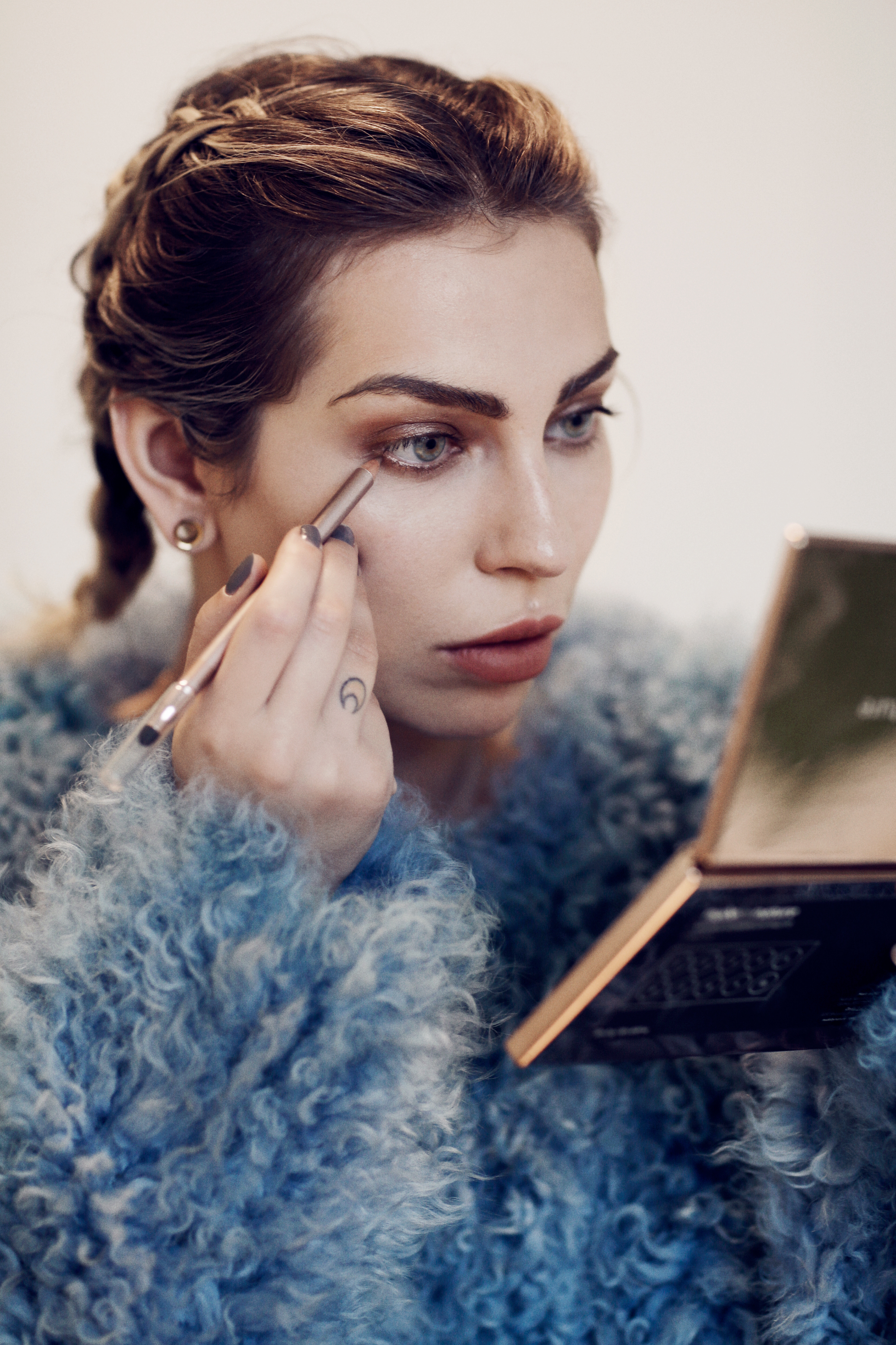 Anschließend bin ich mit ein bisschen von dem schwarzen matten Ton in die Lidfalte gegangen und habe den mittelblauen matten Ton aus der Natural Wonders Eye Palette darüber verteilt und sanft ausgeblendet. Die Allure Defining Mascara in schwarz und der Definition Eyeliner in schwarz geben dem Look mehr Tiefe und bilden eine schöne Ergänzung zu dem Blau. Vorteil: Blau lässt blaue Augen noch mehr strahlen und bildet einen schönen Kontrast zu braunen Augen.