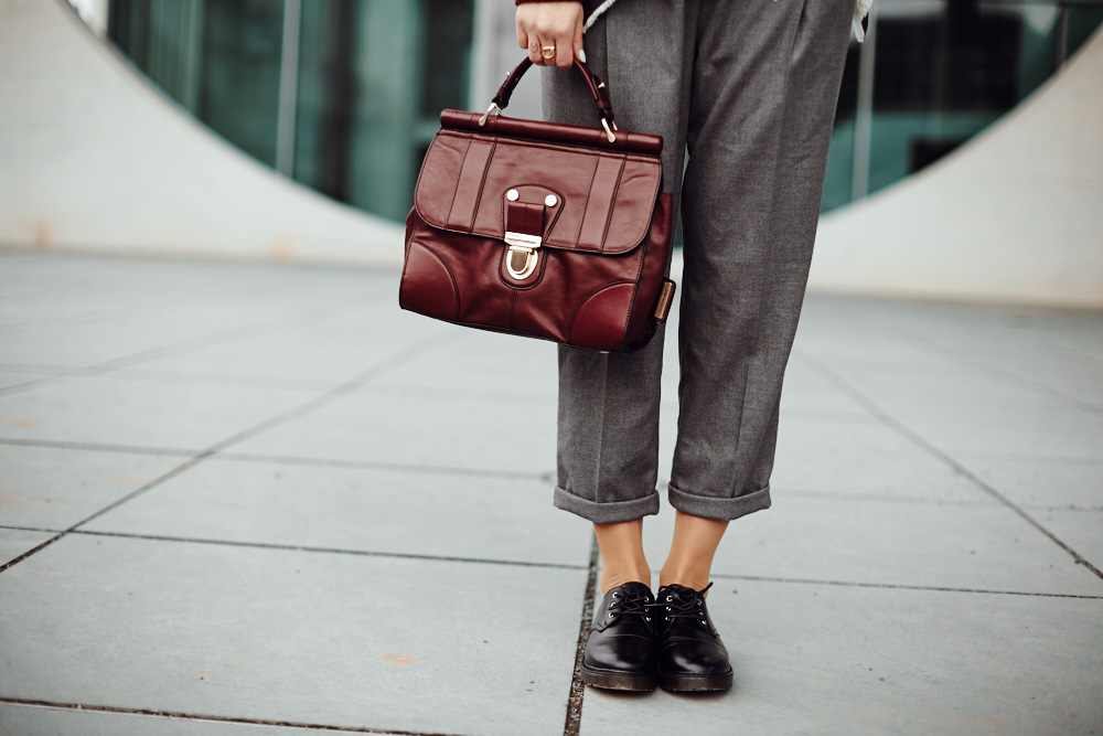Nachdem die Nachricht jetzt irgendwie omnipräsent war und sogar Zalando seiner Seite einen neuen Anstrich in diesem weinrot-braunen Ton verpasst habe, war es nur noch eine Frage der Zeit, bis auch ich mich davon inspiriert fühlen würde und genau das ist in diesem Outfit passiert. Ich glaube in schwarz-grau würde dieser klassische, fast schon seriöse Look ein bisschen langweilig aussehen, aber Marsala verpasst dem Outfit das gewisse Etwas.