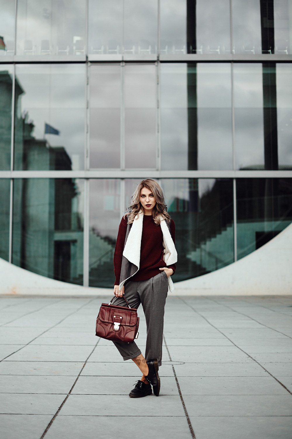 Ich habe kürzlich auch viel von der Farbe gelesen und bin ziemlich angetan, da sich Marsala sehr gut kombinieren lässt. Deine Kombination gefällt mir sehr gut! Die Hose ist der Knaller mit den Schuhen :)