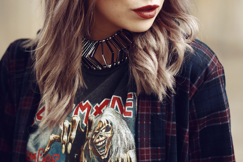 Ich bin kein Fan von Hosen, die über dem Knöchel enden aber das Outfit im Allgemeinen mag ich gerne. Es ist an sich nichts besonderes aber sieht sehr bequem aus und erinnert mich ein wenig an die alte rockige, grungige Masha : D Und ich finde es gut, dass du tatsächlich Iron Maiden hörst. Jedenfalls sagtest du mal das du Band Shirts nicht ohne Grund trägst.