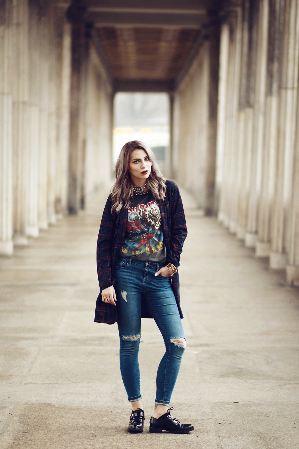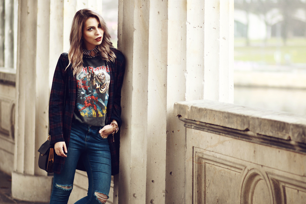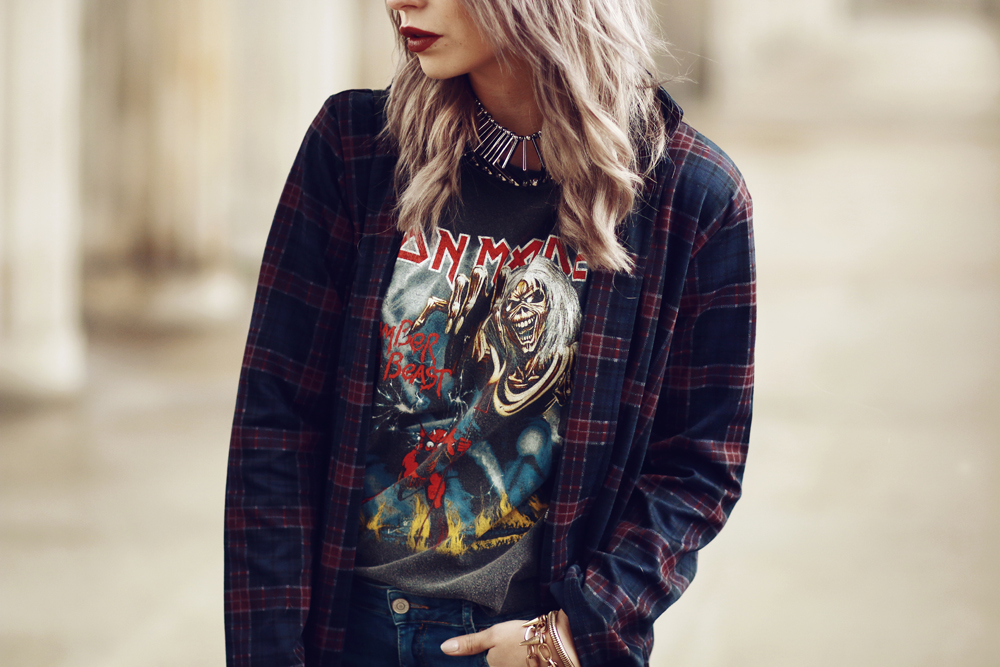 Ich bin kein Fan von Hosen, die über dem Knöchel enden aber das Outfit im Allgemeinen mag ich gerne. Es ist an sich nichts besonderes aber sieht sehr bequem aus und erinnert mich ein wenig an die alte rockige, grungige Masha : D Und ich finde es gut, dass du tatsächlich Iron Maiden hörst. Jedenfalls sagtest du mal das du Band Shirts nicht ohne Grund trägst.