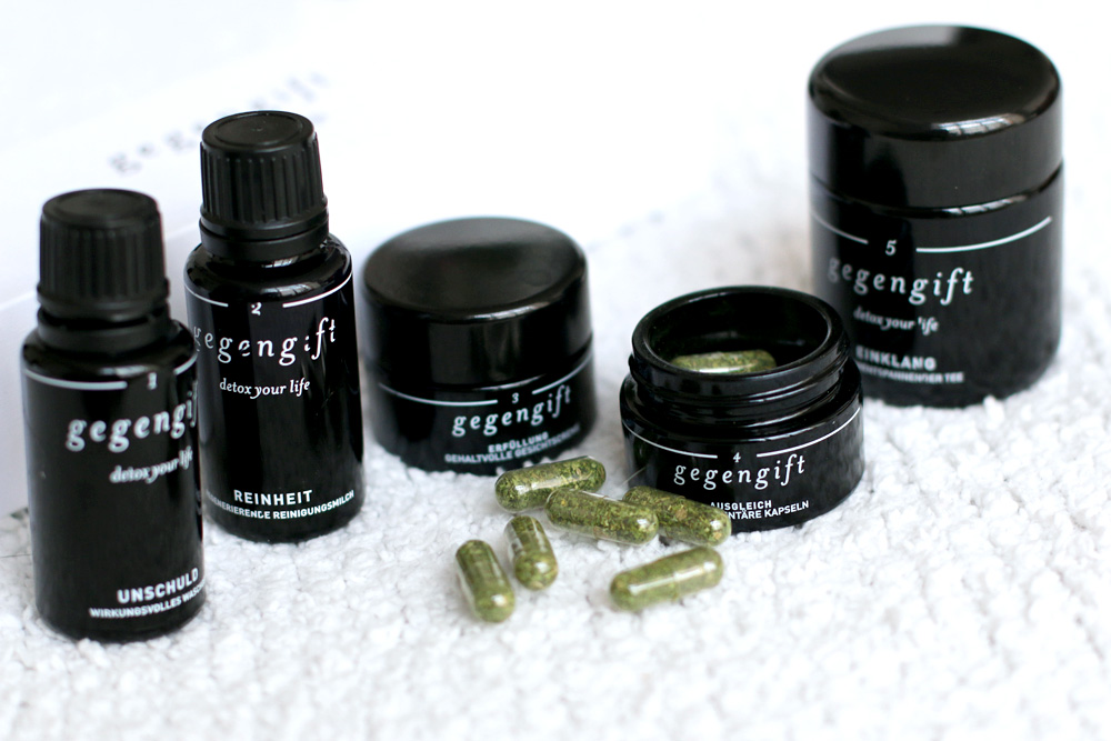 Wer gerne detoxen möchte, aber dabei nicht aufs Essen verzichten möchte, dem kann ich Gegengift ans Herz legen. Eine Art Rund-um-Konzept, das Körper und Haut säubert, ohne dass man dafür etwas spezielles essen oder trinken muss – wobei eine gesunde Ernährung ja immer förderlich ist! Das Gegengift Paket besteht nämlich aus Nahrungsergänzungsmitteln, Tee, Waschlotion, Reinigungsmilch und Creme! Eine echt sehr coole Idee!!     Übrigens: eigentlich hatte ich sogar ein Video-Tagebuch geführt und jeden Tag meinen Zustand dokumentiert. Leider hatte ich nicht bemerkt, dass mein Mikro kaputt war und so ist da einfach gar kein Ton zu hören, sondern nur rauschen! So so so ärgerlich!!! Ihr könnt euch nicht vorstellen, wie übel drauf ich deswegen war! Ich war nämlich so stolz auf diese Idee und mein Durchhaltevermögen… naja so muss ich auf jeden Fall noch mal detoxen und das nachholen!!     Lately, I felt ill all. The last two months were hard: I had no sleep, was always traveling, was sick constantly, ate irregular and unhealthy and also the condition of my skin was horrible. All I wanted was to feel good again and so I decided to make my first detox treatment.   Friends, who detoxed before told me, that it’s just the perfect cure to feel good again and made me want to try that by myself. Honestly, I really needed a wonder! I decided to try the 5-days Super Green treatment from Detox Delight, simply because it sounded most promising, but also hard.   During the treatment you drink 6 juices a day: 1 lemonade in the morning, 4 green juices and 1 nut milk in the evening. No food, only water and tea. That’s it. For 5 days.   I know that sounds not really much, but in the end it’s up to 15kg fruits vegetables, that you drink every day. Nutrients! Thus, the metabolism isn’t running on the back burner (ie no yo-yo effect!) but is still active. It’s important that the juices are quite fluid, so the body can concentrate it’s energies on fat burning, healing and regeneration, instead of digest. And that’s what happened.