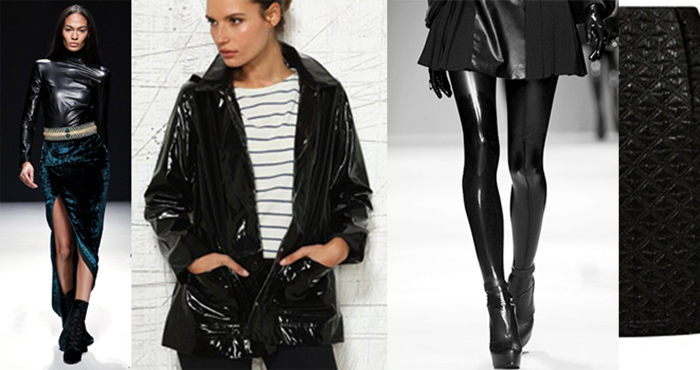 Diesen Winter freue ich mich besonders auf glänzende Material, die von ihrer Struktur her schon auffallen. Samt in gedeckten Tönen, glänzende Lack- und Plastikmaterialien, gerne auch ein wenig futuristisch angehaucht, und superweiches Leder liebe ich grade und am liebsten alles zusammen.