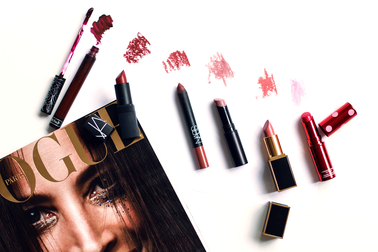 Let’s start softly: initially I wasn’t sure whether I should include the BeneBalm by Benefit because it’s not a real lipstick as such. But it feels so good and gives the lips such a subtle and even colour that I decided to include it here. I really love it, it makes my lips look wonderfully soft :) beste-Lippenstifte-10   I was in the mood for a light tone, and my choice fell on Tom Ford (first time), a product that’s beautifully packaged and gives my lips a light, peachy, matte color. A great tone that makes me look fresh in an instant and adds a shade of pink to my complexion. It’s obviously a matter of type whether that works for you or not. With light tones it’s often difficult to find the right shade, but this one here works just perfectly :) beste-Lippenstifte-8   I did a cooperation with Catrice, as part of which I received what feels like millions of different amazing lipsticks. Among them a real new favourite of mine: The Catrice Ultimate Stay (color 050), with it’s amazing dark pink tone with a touch of coolness. Even if it’s a lighter tone it looks quite extreme, and makes me look a bit like an ice princess. I love the lipstick’s consistency as well. And on top of all that it’s really super affordable. And if that’s not enough, here’s the ultimate kicker: this lipstick actually brings a color tone to my huge collection that was missing before. beste-Lippenstifte-1   Last week I already told you a little bit about the Velvet Matte Lip Pencil from Nars. It’s hands down one of the best lipsticks I ever bought. I love how subtle it is, and how it enhances my natural lip color with a soft line. One of my absolute favourites. beste-Lippenstifte-9   I’m not quite sure what possessed me to by the VIP Red by Nars, given how many red lipsticks I already have. But I simply couldn’t pass this one by when I saw it. It’s wooden-red tone called me, drew me in, and I knew I had to give it a home. A great choice! I wear it often, and I have to say that it adds something different and new to my collection of reds. A very elegant choice. beste-Lippenstifte-7   Dark, darker, Vampira! What a name for my latest purchase in New York by Kat D. This one is really one of a kind, totally unique with it’s extreme matt look, and it stays forever. It’s almost more like a thick coat of paint on your lips, which also makes it a bit difficult to apply. First it’s a bit wet, then it dries and takes on its specific matte shade. It’s maybe a slightly complicated choice, but it really pays off with a super interesting look. The right choice for endless party nights :) beste-Lippenstifte-4   Если есть что-то, что я готова покупать снова и снова, то это, конечно, помады! Их никогда не бывает слишком много – точно так же, как и сумок или туфель. Даже если ты уже не знаешь, зачем тебе нужна еще одна помада, еще один экземпляр никогда не помешает. Поэтому в последней поездке я не могла не заглянуть в Sephora, и так уже получилось, что в моей корзинке оказалось сразу несколько губных помад. Чтобы не растягивать рассказ о моих новых приобретениях на несколько месяцев, сегодня я решила посвятить им отдельный пост. Какая из моих новых помад вам нравится больше всего? :)   beste-Lippenstifte-3