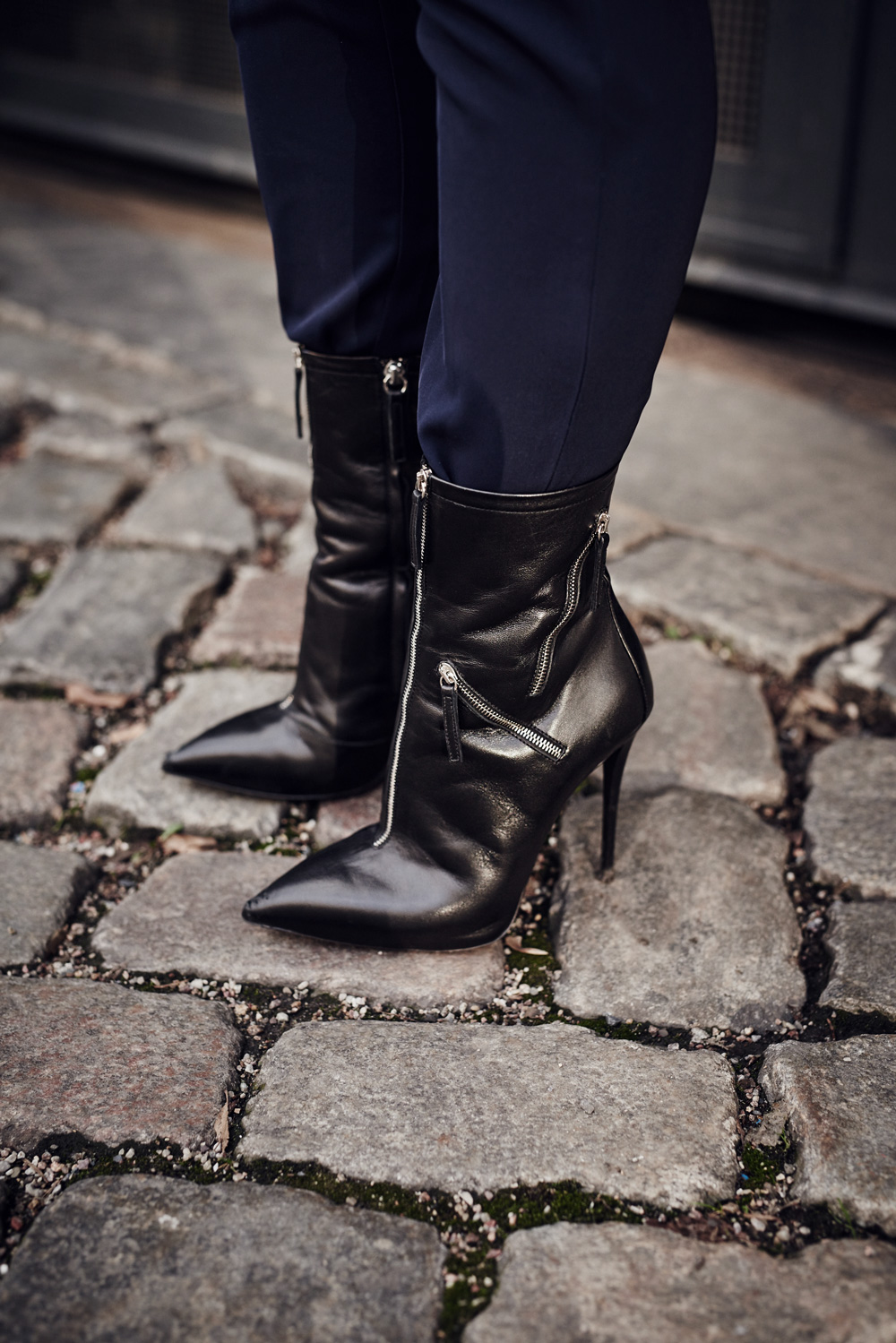 2. Du Schöne du! Ein wirklich wunderbarer Look in meinen liebsten Farben – und die Schuhe! Du bist aber auch echt mutig, weil ich schon auf den Fotos so viel Kopfsteinpflaster sehe und es ja wirklich nicht so leicht ist, dann mit solchen Heels zu laufen. :) Ich finde das Outfit auch nicht zu schick, die Jacke macht es wirklich super edgy :)