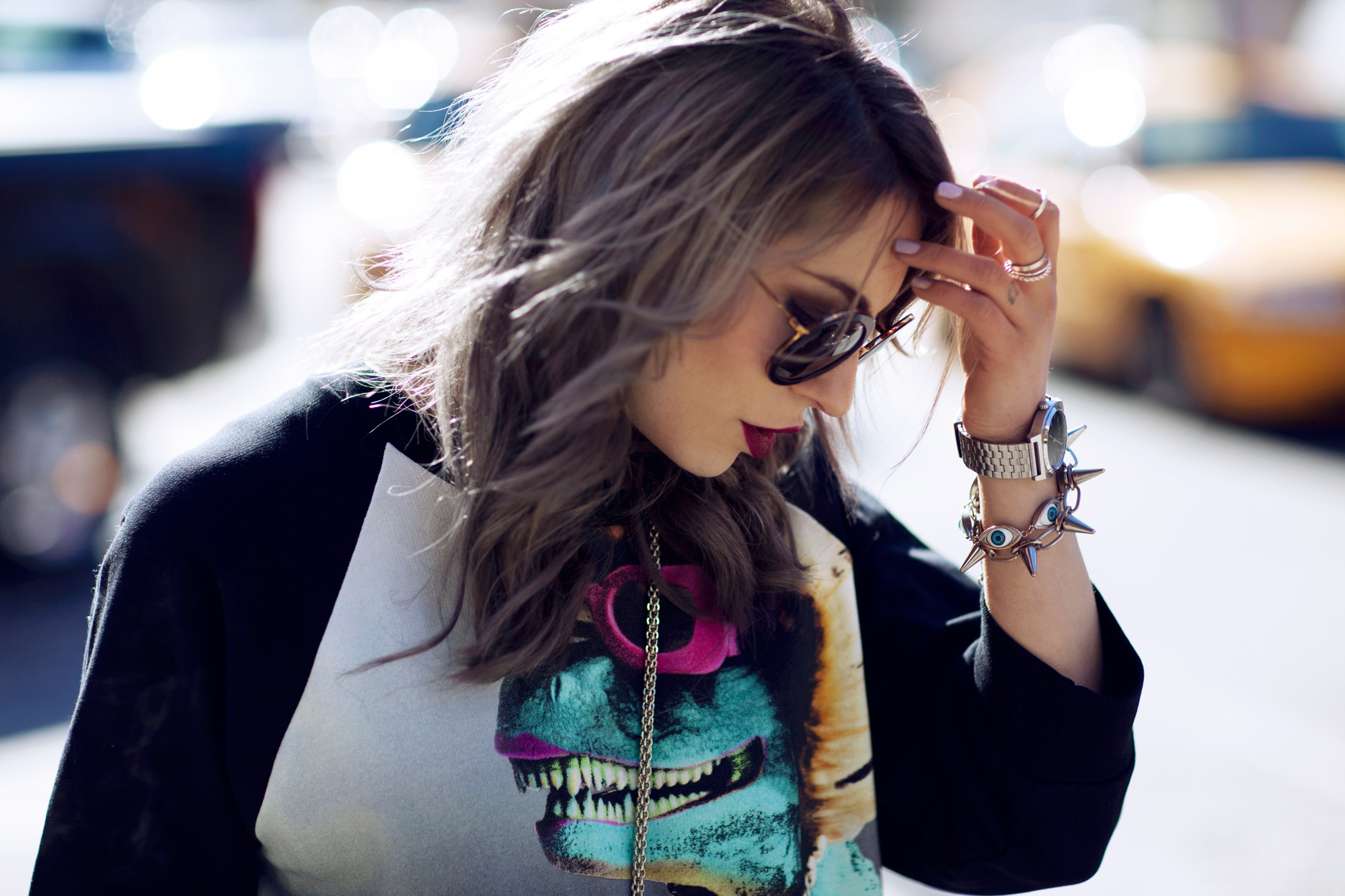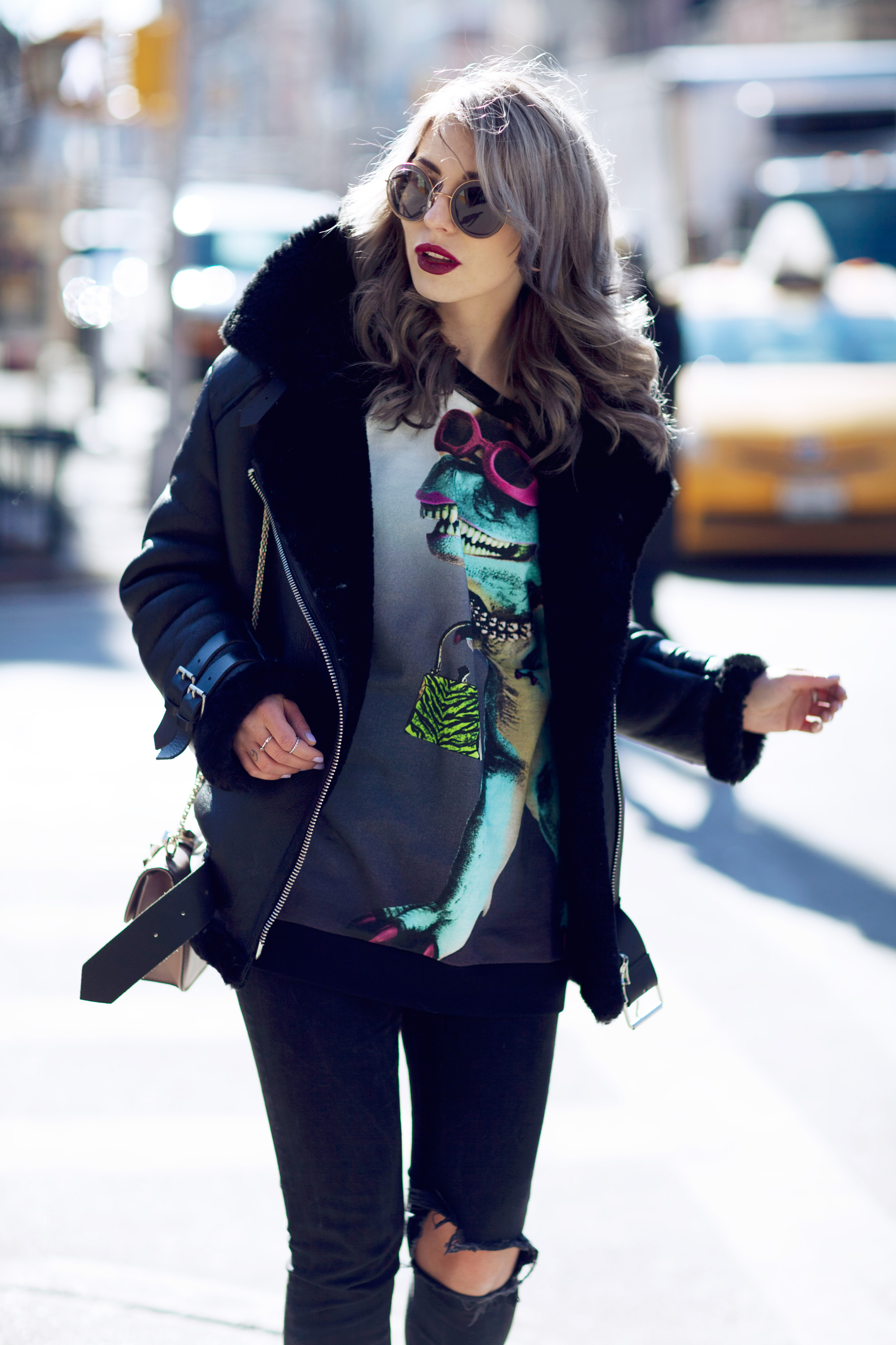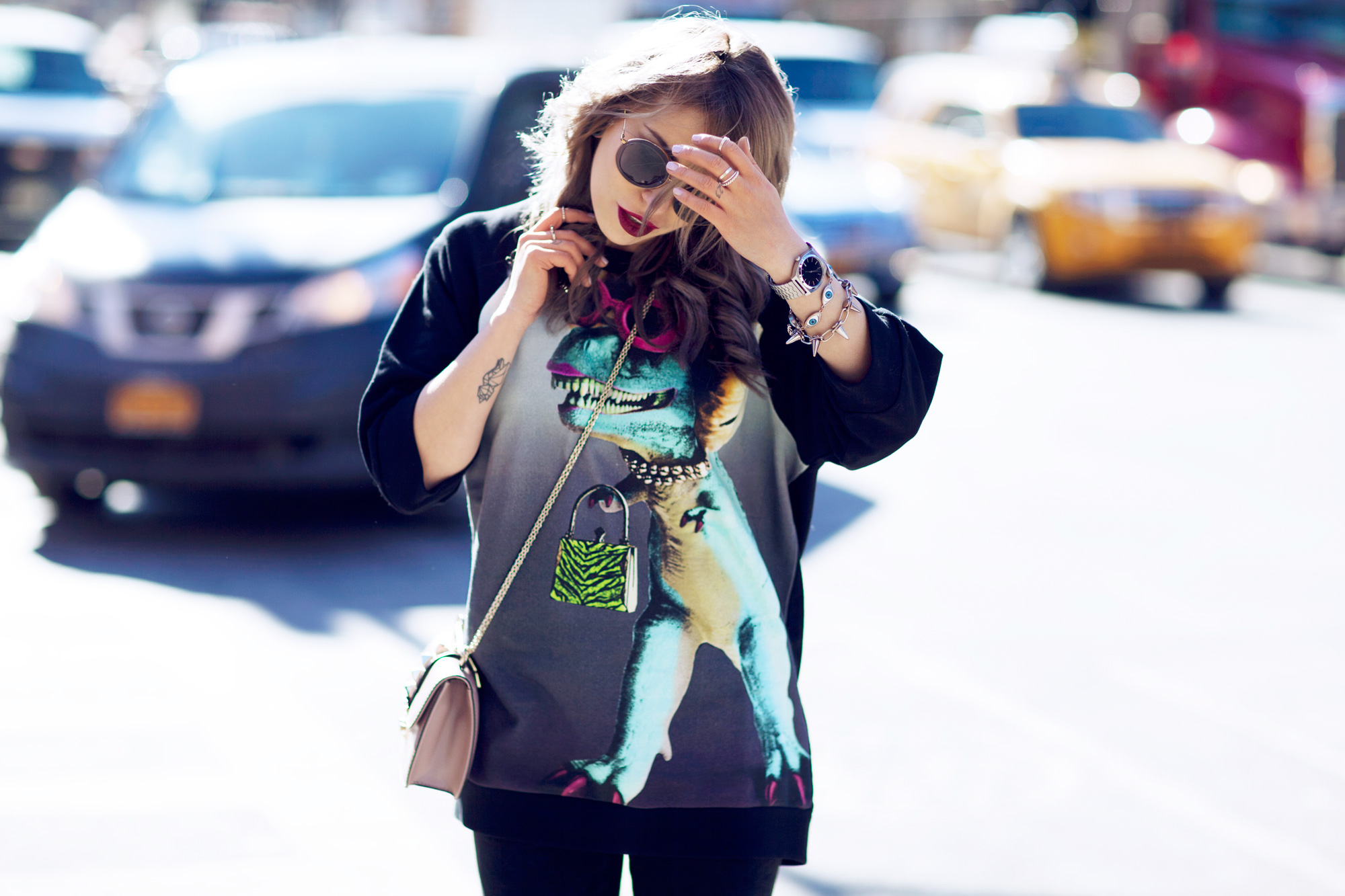 9. OMG, das Outfit ist so genial!!!! Wie passend auch mit der Sonnenbrille, der Dino trägt eine, die perfekt zu deinem Lippenstift passt! :D