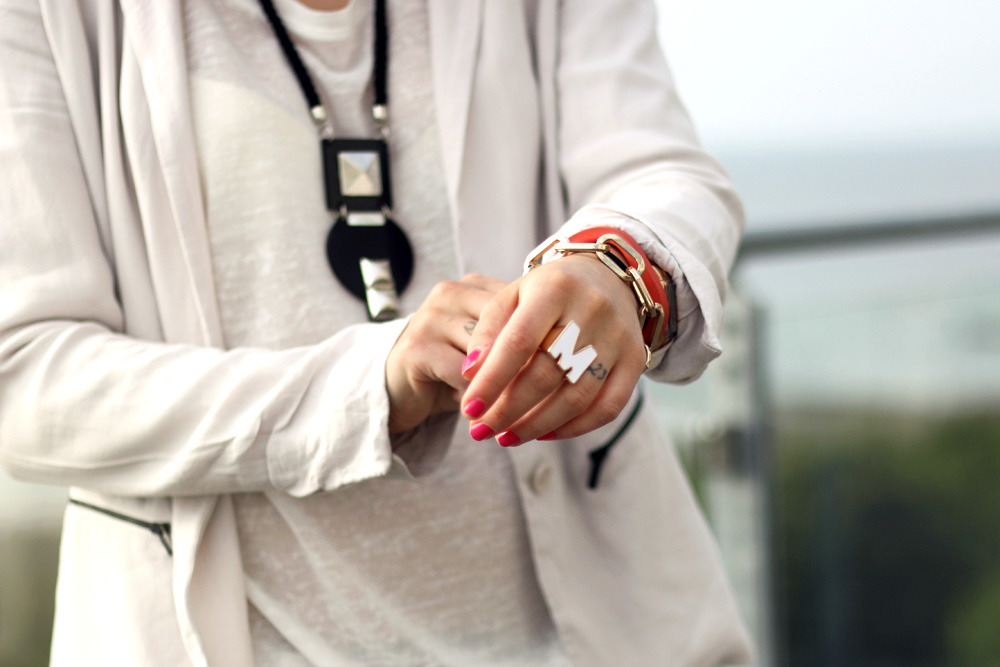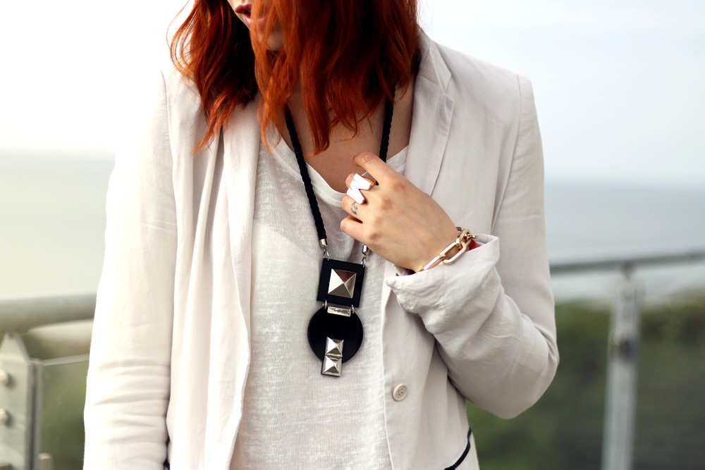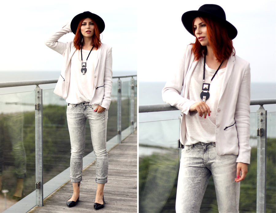 Seit ich in Ahrenshoop war, steht eine Sache auf meinem Wunschzettel ganz weit oben: irgendwann will ich auch eine große Terasse mit einem traumhaften Ausblick. Wie schön war es doch, jeden Morgen aufzuwachen und aufs Meer zu blicken – ein Traum sag ich euch! Ein Traum, der zumindest für ein paar Tage in Erfüllung gehen durfte und ein Traum, der übrigens auch perfekt als Kulisse für ein Outfit diente. Ungewohnt ist auch der Look: statt, wie immer, komplett in schwarz rumzulaufen, habe ich mich im Urlaub für das Gegenteil entschieden: komplett in weiss. Diesen White Trend habe ich ja zur Zeit (eigentlich auch schon seit letztem Jahr..) eh so ein bisschen für mich entdeckt, auch wenn ich noch ein klein wenig am experimentieren bin, wie ich bei diesem Look nicht in dieses Segler- oder Krankenhausthema reinrutsche, denn irgendwie ist der All-white Look bei mir noch immer im Kopf mit den üblichen Klischees verankert. Und ganz ohne schwarz geht’s bei mir dann doch nicht…. :) Since I was in Ahrenshoop I added one thing to my wish list: a big terasse with a beautiful view. Waking up in the morning and looking at the sea – that’s just a wonderful feeling! At least I had this feeling for a couple of days and so, of course, I had taken some outfit pictures on my beautiful balkony. Besides the view, also my outfit is very unusual, because it’s all white instead of all black :)
