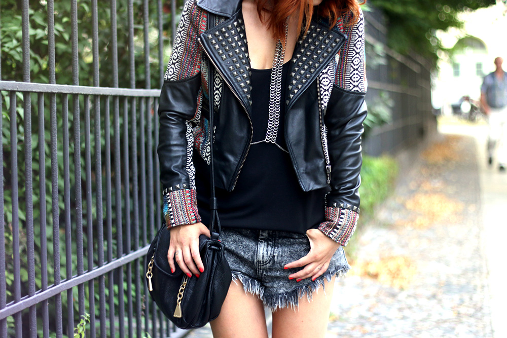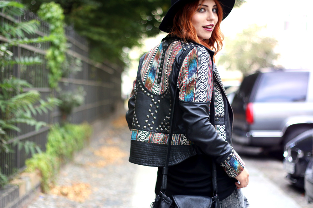 Azteken-prints so eine Sache bei mir: gern auf einem weißen Sommerkleid, oder auf einer Clutch aber nicht so gerne auf einer Lederjacke. Nundenn, ist Geschmackssache, Masha ;) Dier stehts perfekt!