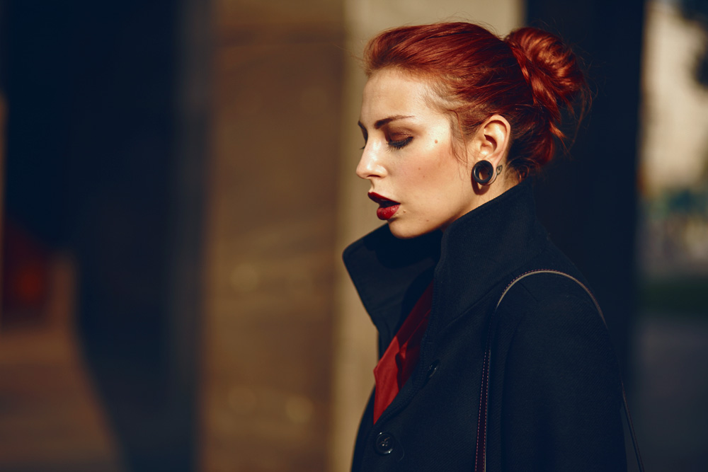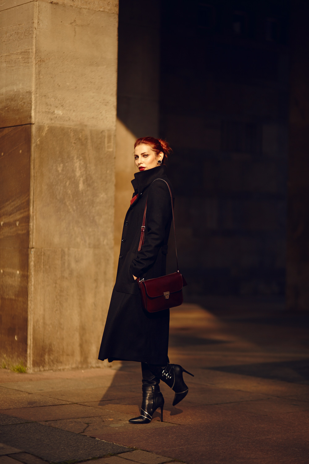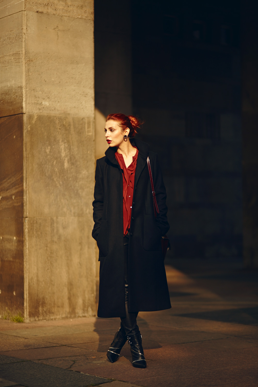 Ich kann also auch anders, dabei sich gar nicht so viel geändert hat: ich trage eine Lederhose (passiert oft), einen langen schwarzen Mantel (passiert ebenfalls oft), mörderisch hohe Boots (oft oft oft) und eine zur Haarfarbe passende Bluse (passiert ab und an).