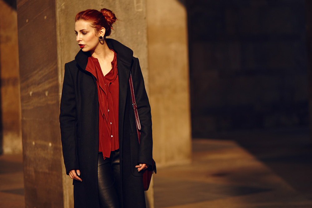 Actually the outfit is not that different from what I usually wear: leather trousers, a long black coat and high boots and a blouse. So why I look so different now?